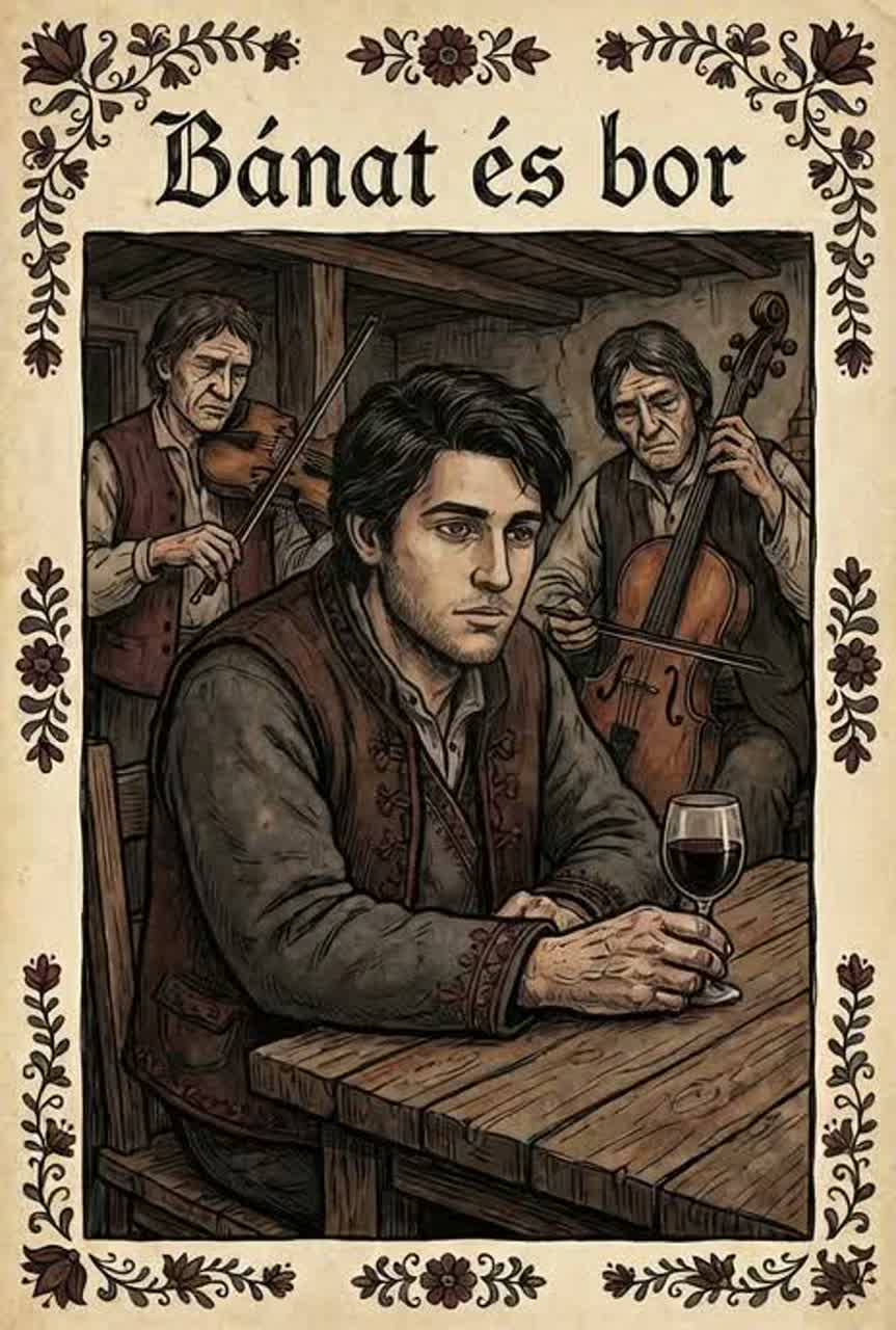 Szekler folk, Hungarian folk, Transylvanian folk, acoustic, raw, emotional, slow tempo, violin, cimbalom, aged vocals, A Hungarian folk-pop song with a melancholic yet upbeat feel, The instrumentation features a prominent acoustic guitar providing a rhythmic and harmonic foundation, complemented by a violin playing a lyrical melody, A male vocalist sings in a clear, slightly raspy baritone, delivering the lyrics with a narrative quality, The song is in a major key, with a moderate tempo, The chord progression is relatively simple, supporting the vocal melody, Production is clean, with a natural acoustic sound and a balanced mix that highlights the vocals and violin