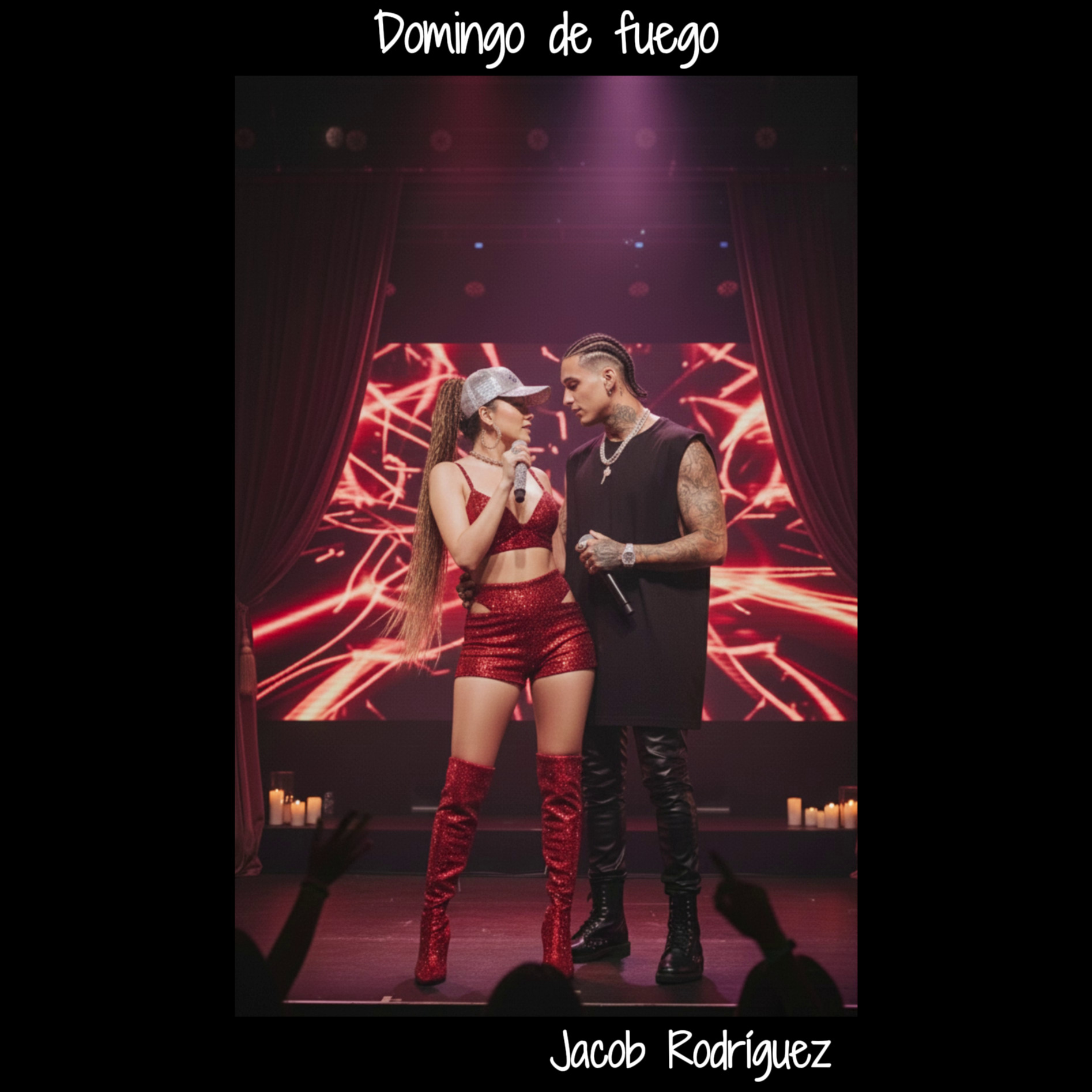 Male voice: playful, flirtatious, confident; can rap or speak rhythmically in verses, Female voice: sensual, teasing, playful; moves from soft whispers in verses to confident, sultry delivery in choruses, Beat: bouncy dem-bow rhythm, deep bass, crisp hi-hats, subtle synths for atmosphere, Verses: vocals shine, instrumentation minimal to highlight voices, Choruses: duet, layered backing vocals, adlibs, and playful echoes to reinforce hook (“domingo dominguero”) and make it catchy and danceable, Bridge/verse 3: voices can alternate or overlap for playful dialogue, Mood: fun, sexy, confident, playful, and seductive, Lyrics: explicit and flirty, vocal delivery teasing and sultry, Avoid harsh aggression; maintain smooth urban flow, bailable pero íntimo