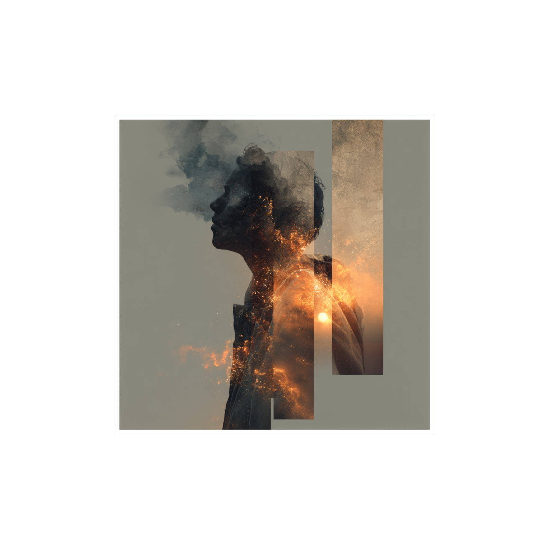 A psychedelic soundscape starts with reverberant double bass and soft delay, layered against tribal drums, Pulsing bass and analog synth chords build a dense sonic wall, with seed tones, reversed swells, and distant chimes, Whispered “I am…” vocals drift in wide spaces, Verses evolve from grounded to ethereal textures; percussion is sparse, defined by deep heartbeat thuds at key points, The climax surges with organ swirling sonics and submerged vocal layers, then fades into cosmic ambience as a resonant deep organ emerges, adding vastness to the closing mix