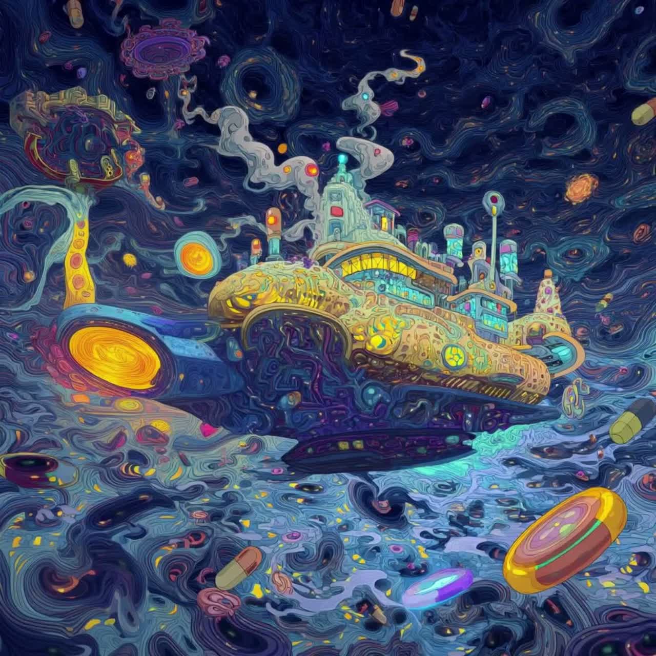 Experimental psychedelic rock opens with swirling organ, phaser-drenched guitar riffs, and a fluid bassline, Loose, extensive drum fills shape the rhythm, Dynamic changes weave through trippy solos and textural layers, building to expansive bridges and experimental instrumental breaks, ‑06