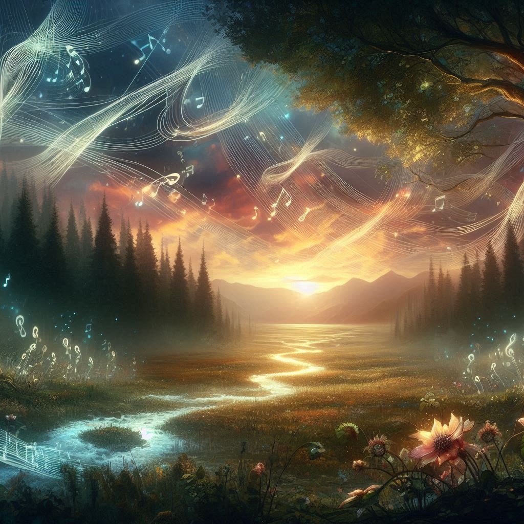 Choirs, Choral, Soft and rhythmic melody, Acoustic guitar, Light percussion, Harp