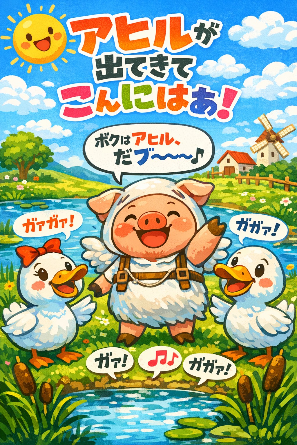 A bright and lively children’s pop song with a strong, steady rhythm, Clear and catchy melody, easy to hum, Acoustic guitar, piano, light percussion, and playful energy, Warm and cheerful like an NHK “Minna no Uta” style, Celesta and glockenspiel only as light accents, not cute or delicate, Energetic, confident, and joyful