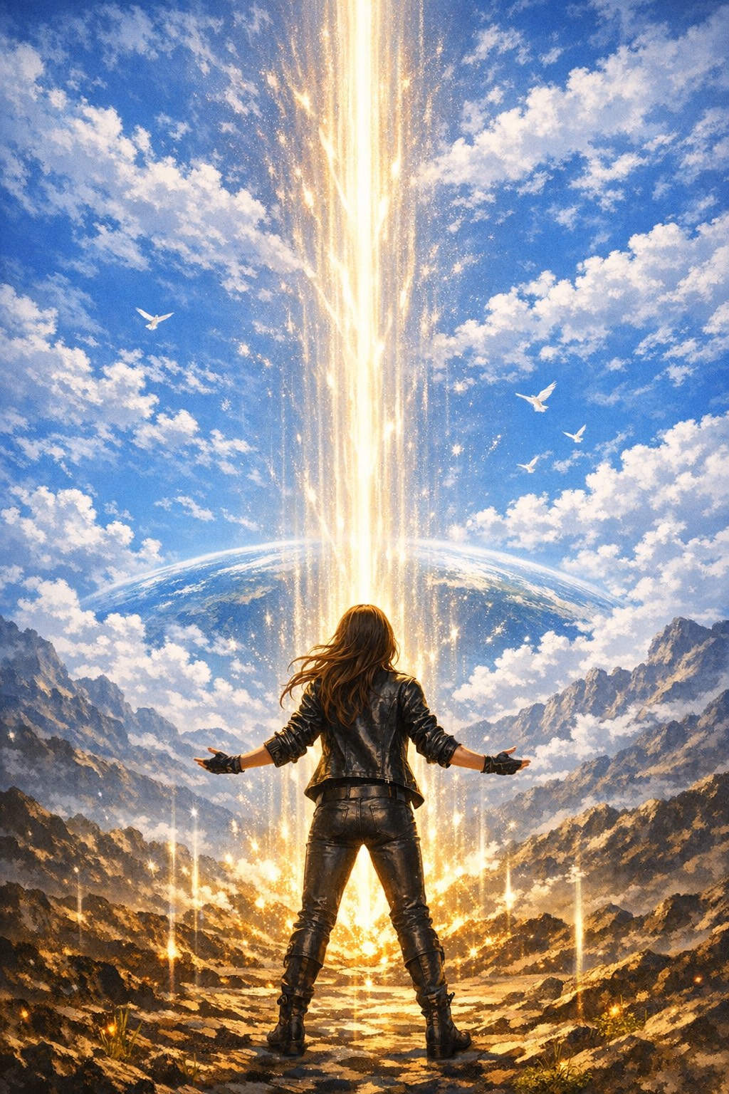Powerful and intense rock with electric guitar and strong drums, Dark, energetic, and rising atmosphere, A sense of awakening, determination, and unstoppable will, Vocal tone: strong, clear, emotional, with a sense of conviction, Guitar should feel sharp and driving, drums heavy and pulsing, The music should express energy swirling, rising, and pushing the world forward, Chorus should explode with power and momentum, Overall theme: willpower, creation, energy, and the force that moves the world