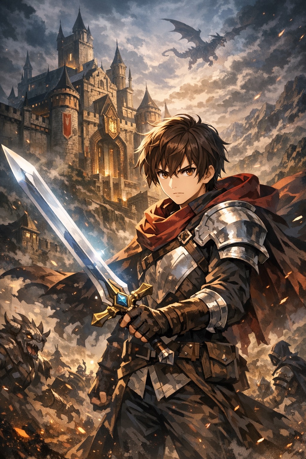 epic symphonic Japanese fantasy, cinematic, female vocals, deep, emotional, tone, female vocals, dramatic, light, male vocals, soaring, violin
