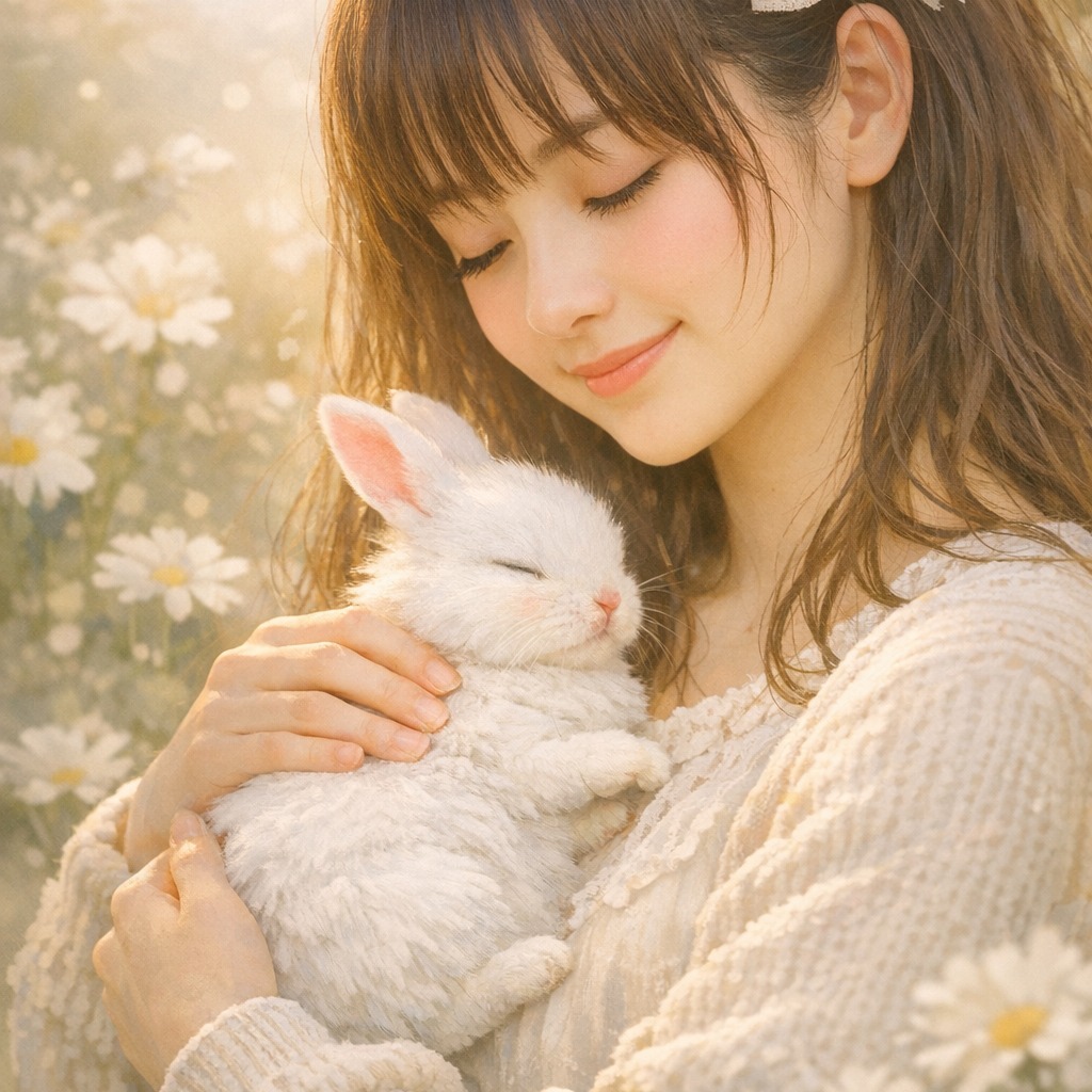 Gentle Japanese acoustic ballad, Warm, intimate, and comforting, A rabbit sings lovingly to its mother, with a feeling of everyday family warmth and quiet happiness, Not sad, not dramatic, Soft acoustic guitar, gentle piano, light strings, minimal rhythm, Female vocal, warm and natural, 20s–30s, calm and close, Feels like soft light at home, Ending fades gently with peace and love