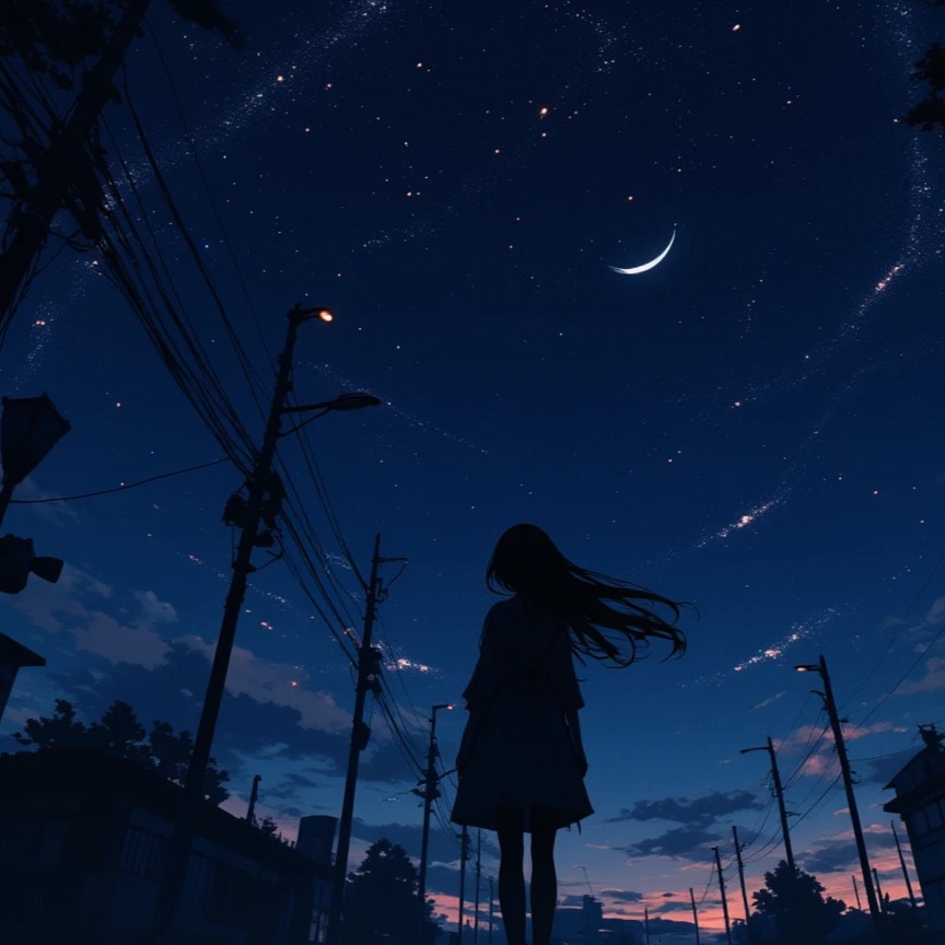 Emotional and warm J-POP with a gentle winter night atmosphere, Soft, airy vocals with light harmonies, Warm piano, clean electric guitar arpeggios, subtle synth pads, and soft electronic beats, Nostalgic and introspective mood, supporting themes of adolescence, quiet anxiety, and personal growth, Calm but uplifting energy, like walking home under a midnight blue sky, Transparent, soft, sentimental, and comforting