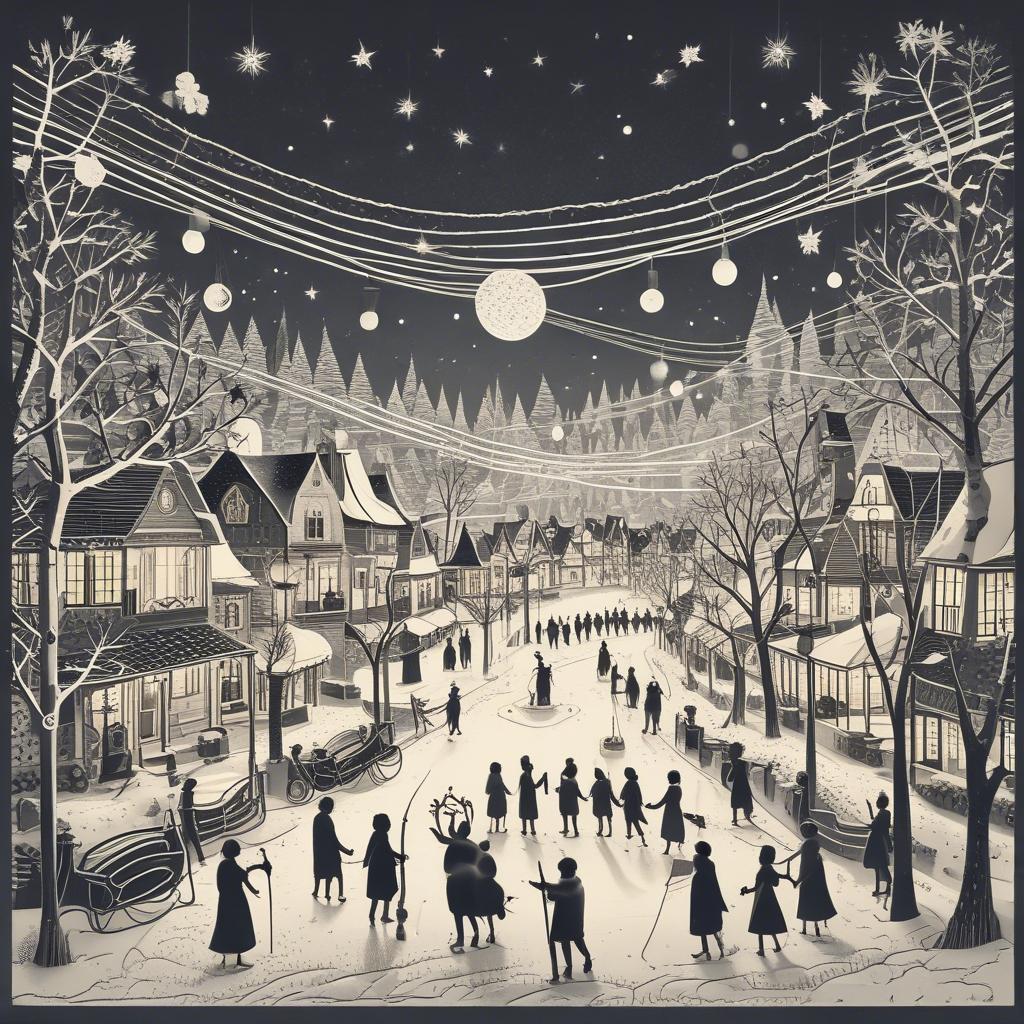 This festive Christmas track weaves acoustic folk guitar, jangle pop leads, and crisp americana percussion with upright bass, Verses mix playful woodwinds, odd-meter brass, piano, and brush drums atop light chimes, Swelling orchestral strings, childrenโs choir, and bright jingle bells launch the hook, fusing doo-wop harmonies and playful avant-garde textures, Operatic soprano melodies entwine with folk phrases, underpinned by vibrant brass, lush choir, woodwinds, and classical ornamentation, Lounge keys and gentle strings build a whimsical outro, ending in a jubilant orchestral flourish