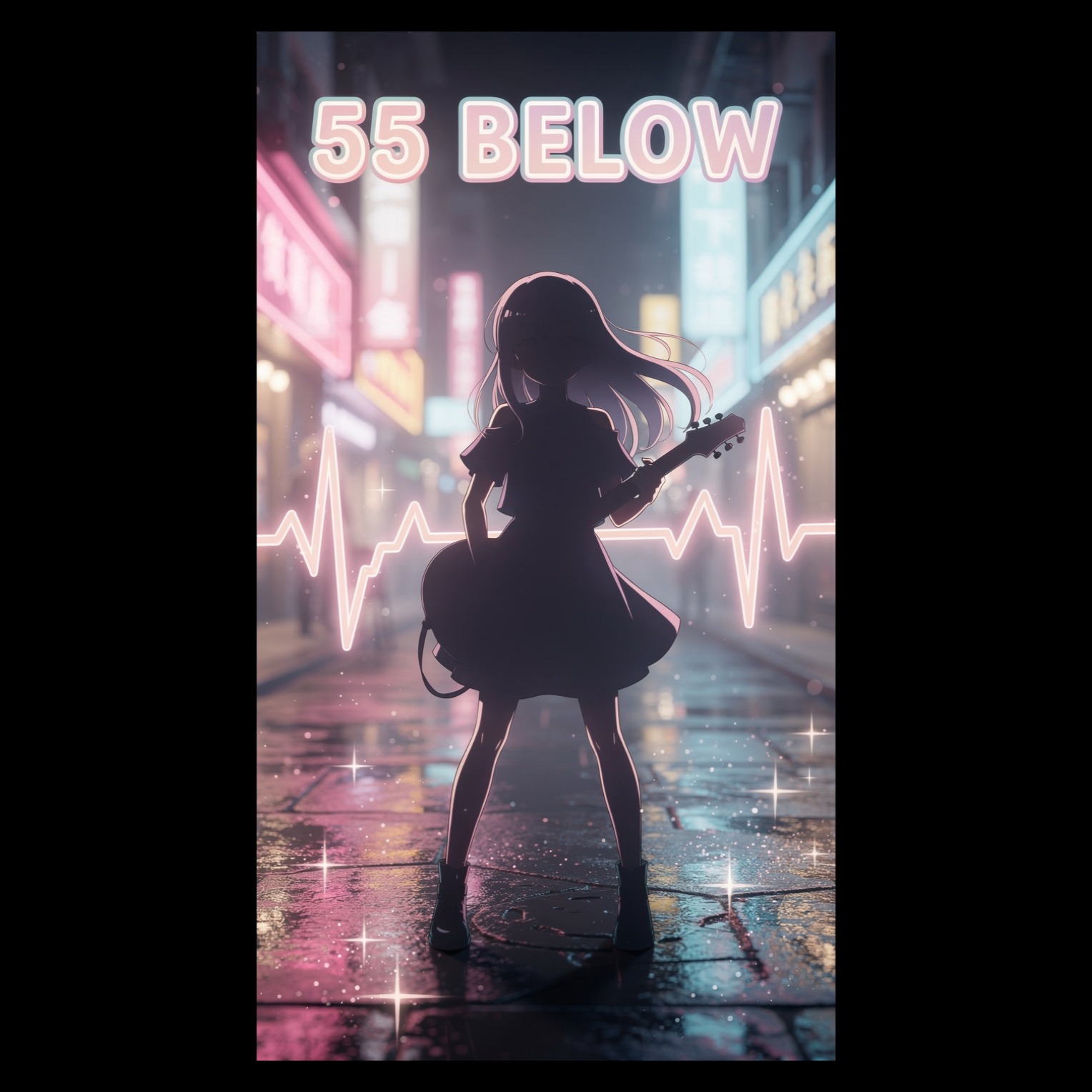J-pop rock, Taiwanese pop, 138 BPM, shamisen tremolo, accordion stabs, sparkly electric guitars, light overdrive, tight pop-rock drums, bouncy bassline, glittery synth accents, crisp highs, wide stereo guitars, soft plate reverb, polished vocal stack, kawaii ad-libs, cute repetition, empowering, city-night sparkle