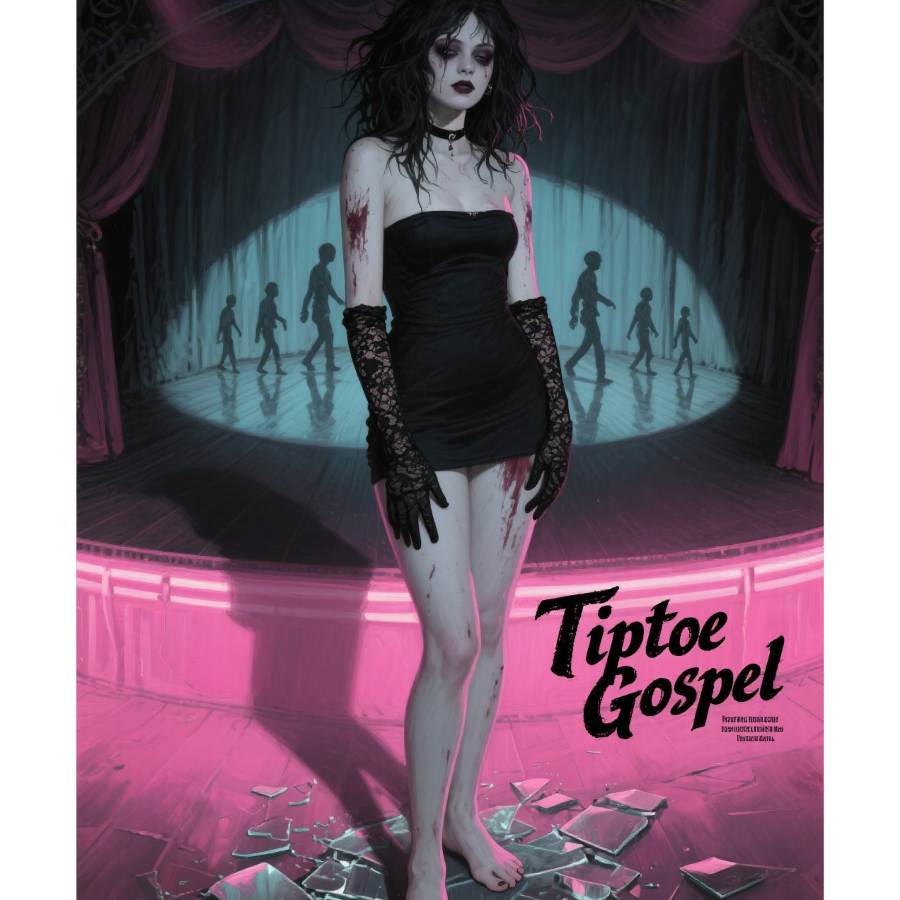 Genre: Avant-Garde Glam Punk, Industrial Cabaret, Darkwave Pop, Tempo: 118 BPM, unstable - the rhythm constantly stumbles, Drums: metallic clicks, like footsteps on tiles, interrupted by bass hits, Bass: minimalist, with a slight distortion, as if covered in rust, Guitars: dirty, but melodic - reminiscent of the sound of an old TV in a loft, Synths: choral, falsely holy, sound like an organ from a toy temple, Vera's vocals: verses - a seductive whisper, with slight sarcasm; chorus - an explosion of glam hysteria, like a theatrical confession; bridge - whisper-core, almost ASMR, turning into distortion, Finale: the sound of footsteps on glass, then a short laugh and the sound of a light switch