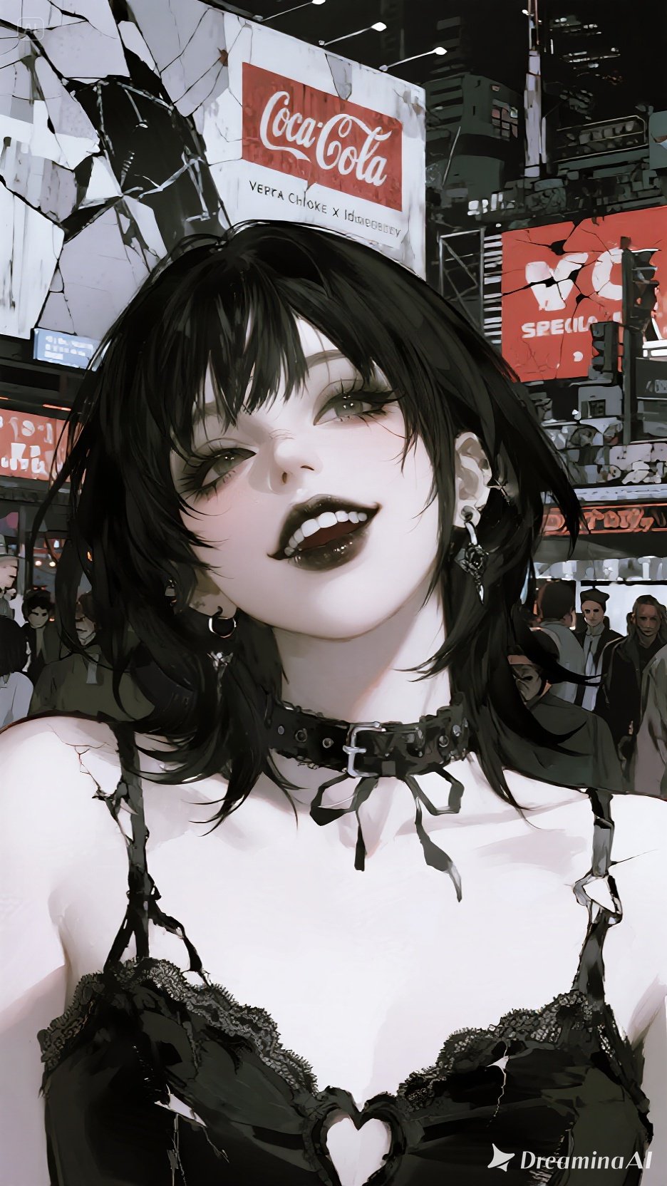 Create a dark post-punk, electroclash track in the style of Vera Choke: sarcastic, gritty, seductive, dystopian, Tempo 124 bpm, Deep distorted bass synth pulses like a decaying neon sign, Sharp metallic guitar stabs drenched in cold reverb, Glitchy electronic drums with intentionally “dumbed-down” rhythms, clipped hi-hats, plastic claps, digitized stomp accents, Layer childish toy-synth melodies that sound overly cheerful against the darkness, Add glitch cuts, corrupted-memory beeps, pitch-warped transitions, Vocals: icy, venomous, half-spoken at times, with doubled layers (clean + degraded), Mood: mocking consumerism, decayed pop culture, idiotic future carnival, Atmosphere: dystopian dancefloor, glowing garbage, broken billboards, neon absurdity, Chaotic yet stylish production, dramatic rises and drops, fierce attitude throughout