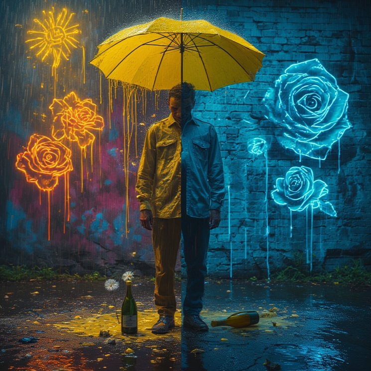 The song unfolds at 75 BPM: warm acoustic guitar and clean piano intertwine with granular glitches and warped percussion, weaving post-folk textures, Folk-inspired vocals float atop evolving harmonies, shifting between lushness and stuttered disintegration, Instrumental breaks fracture time with irregular rhythms and eerie drones, cresting as harmonies splinter into swirling, grainy chaos—evoking entropy, Simultaneously, a shadowy, atonal Track B of dissonant drones and glitchy, arrhythmic percussion is side-chained to the vocal; when vocals enter, Track B is sharply ducked, revealing the order and warmth of the folk layer, As vocals slip away, chaos surges, maintaining delicate tension as structured beauty and disorder compete