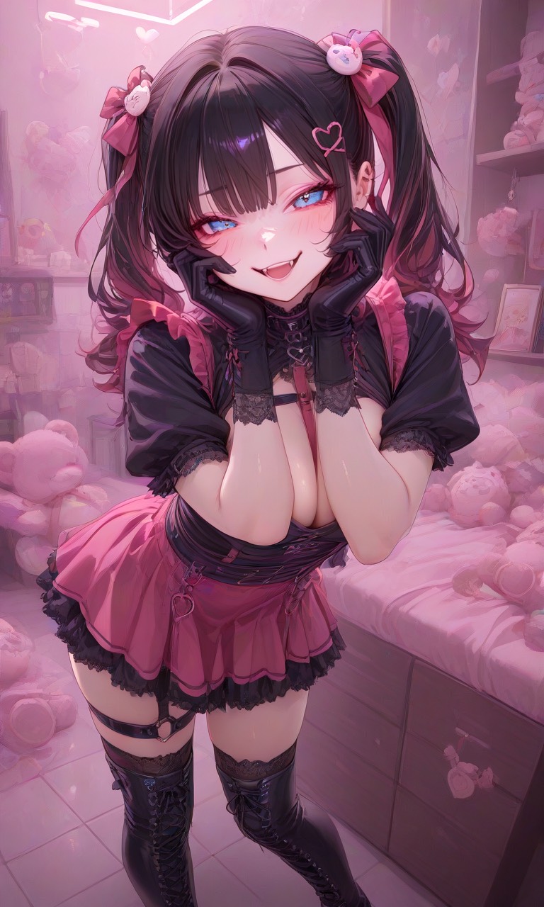 Production: Glitchy Hyperpop Beats, Sparkling Arpeggios, Distorted Bass Drops, Vocal Stutters, Stereo Whisper Layers, Chopped Vocal Hooks, Vocal Style: Clean singing + whisper lines + mesugaki playful rap, JP-EN mix, pitch-shifted harmonies, manic-cute ad-libs, Chorus: Addictive, repetitive phrases, layered vocals, bright synth lead, Dynamics: Quiet intimate verses → explosive chorus → half-time bridge, Target Length: ~3:00