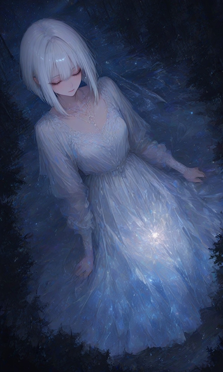[Dark Pop × Witch House, ethereal night vibe; Female whisper Vocaloid for verses/pre-chorus, fragile, childlike, breathy, soft reverb, airy pads, high tone violin, crystal ground piano, metallic percussion, sparse glitch synth, soft sub-bass; AI low robotic whisper for chorus/hook, low sub-bass, echo, layered airy harmonies, haunting, expressive; ambient FX: wind, distant children laughter, metallic chimes; soft piano in bridge; midtempo dark pop beat 80–90 BPM; melodic synth swells for choruses; subtle heartbeat FX in pre-chorus; glimmering metallic highlights; sparse expressive percussion for unstable doll feel; echo/reverb for spatial emptiness; emphasize solitude, longing, nostalgic wish, melancholic yet ethereal atmosphere, human fragility vs artificial night-time whisper; maintain hypnotic, repetitive rhythmic flow; ribbon/memory motif; verses sparse, choruses emotionally rich, hook maximally haunting, outro fading ambient with Vocaloid, ]