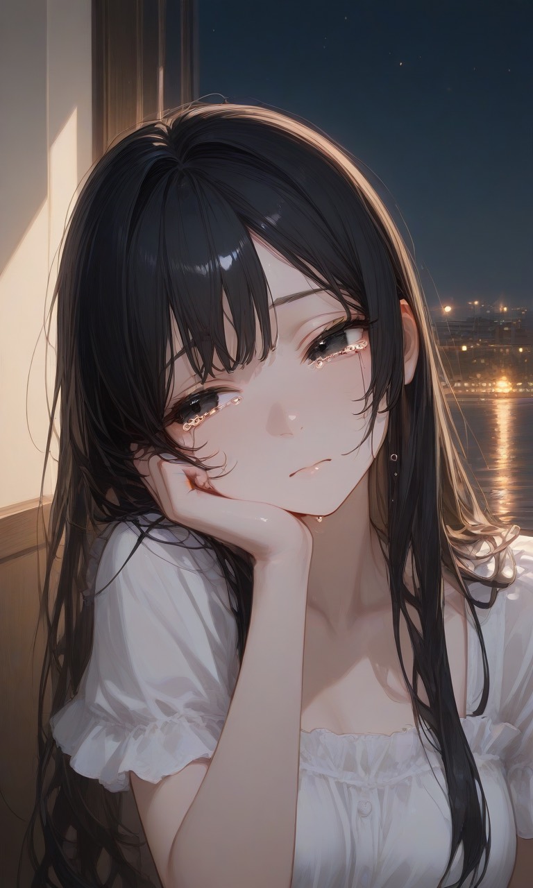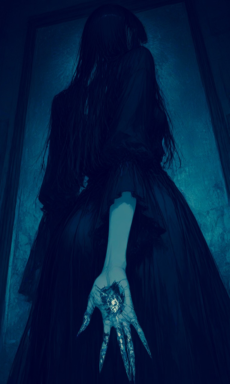 [Dark Pop × Witch House, ethereal night vibe; Female whisper Vocaloid for verses/pre-chorus, fragile, childlike, breathy, soft reverb, airy pads, metallic percussion, sparse glitch synth, soft sub-bass; AI low robotic whisper for chorus/hook, low sub-bass, echo, layered airy harmonies, haunting, expressive; ambient FX: wind, distant children laughter, metallic chimes; soft piano in bridge; midtempo dark pop beat 80–90 BPM; melodic synth swells for choruses; subtle heartbeat FX in pre-chorus; glimmering metallic highlights; sparse expressive percussion for unstable doll feel; echo/reverb for spatial emptiness; emphasize solitude, longing, nostalgic wish, melancholic yet ethereal atmosphere, human fragility vs artificial night-time whisper; maintain hypnotic, repetitive rhythmic flow; ribbon/memory motif; verses sparse, choruses emotionally rich, hook maximally haunting, outro fading ambient with Vocaloid, ]
