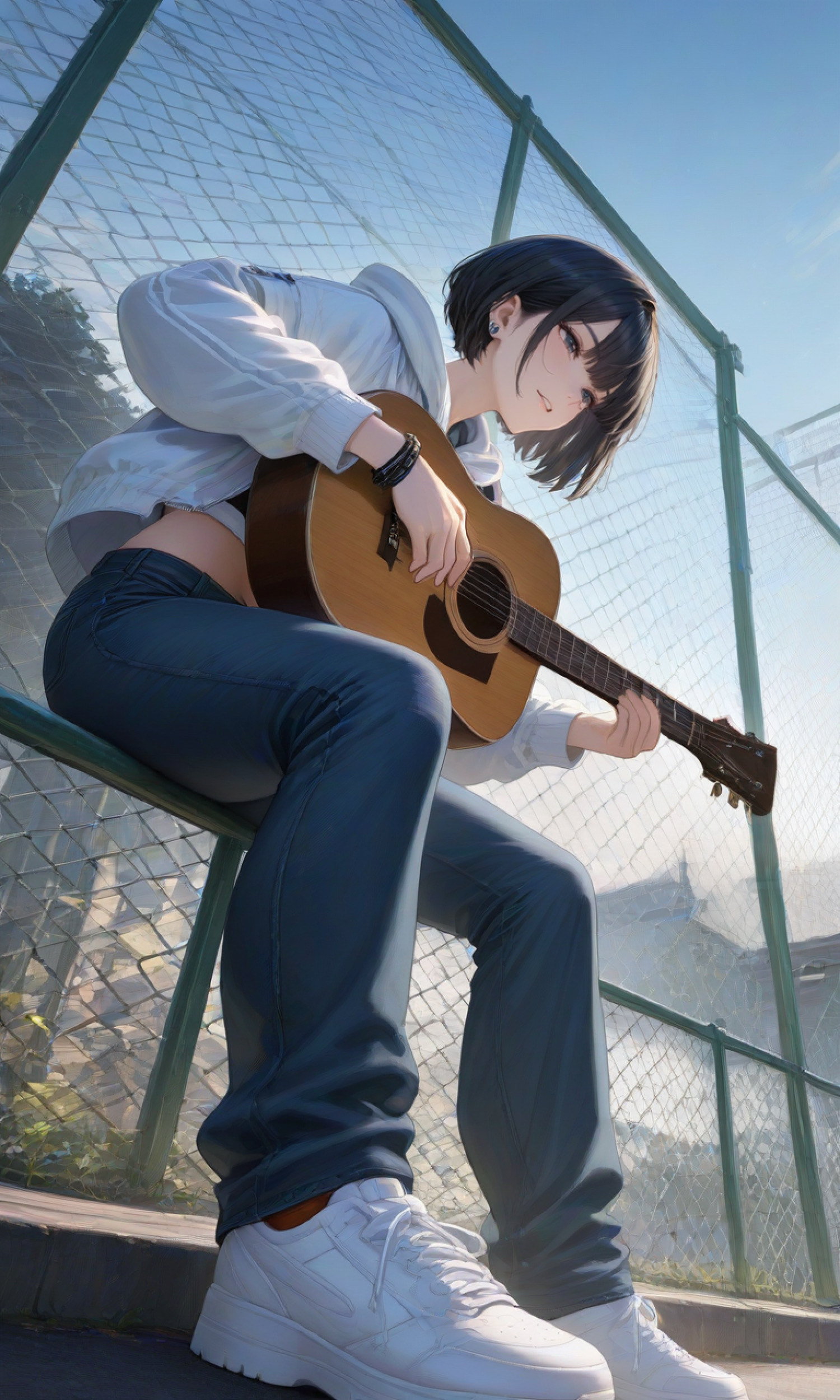Electric Guitar: Clean arpeggio (verses), palm-muted chords (intro), soft sustain (pre-chorus), heavy distortion power chords (choruses), subtle delay (bridge), harmonic fade (outro)
