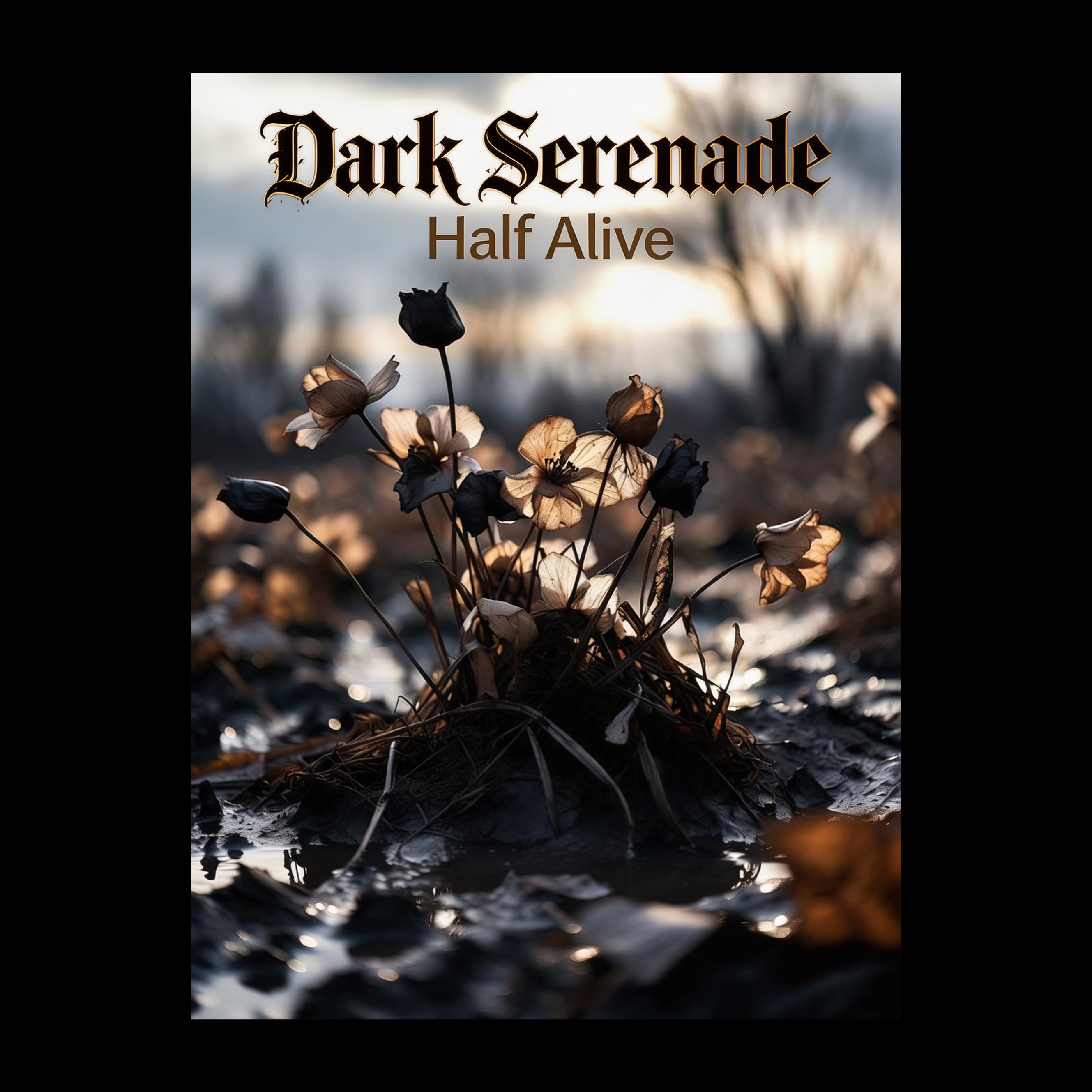 Cinematic gothic metal with darkwave elements, psychedelic rock textures, symphonic folk undertones, subtle Greek influence, deeper bass, slow driving drums, 92 bpm, female voice intimate to fractured emotional peak, dual-layered vocals (human + distorted whisper), haunting, unstable
