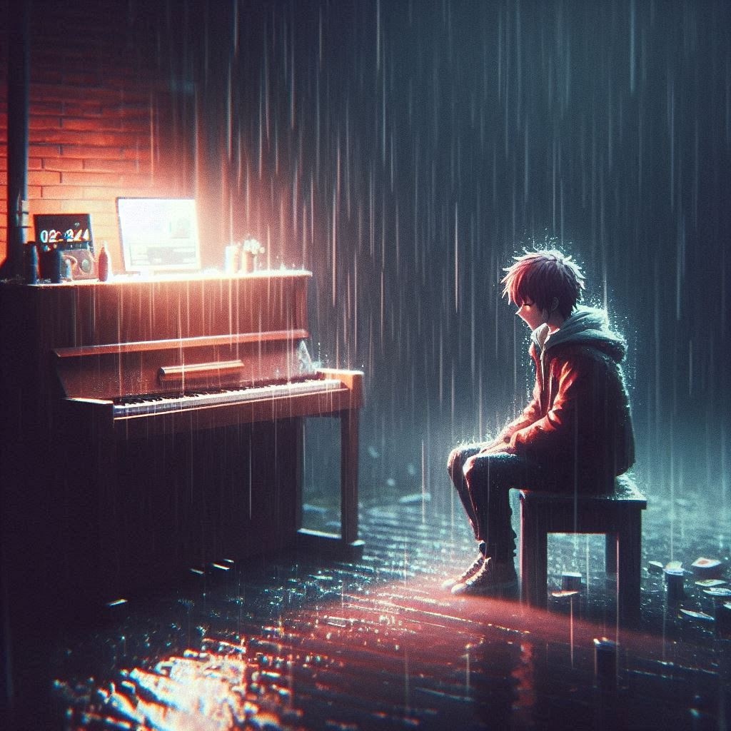 slow dramatic lo-fi, slow deep bass, humming ambience, 4AM in the morning mood