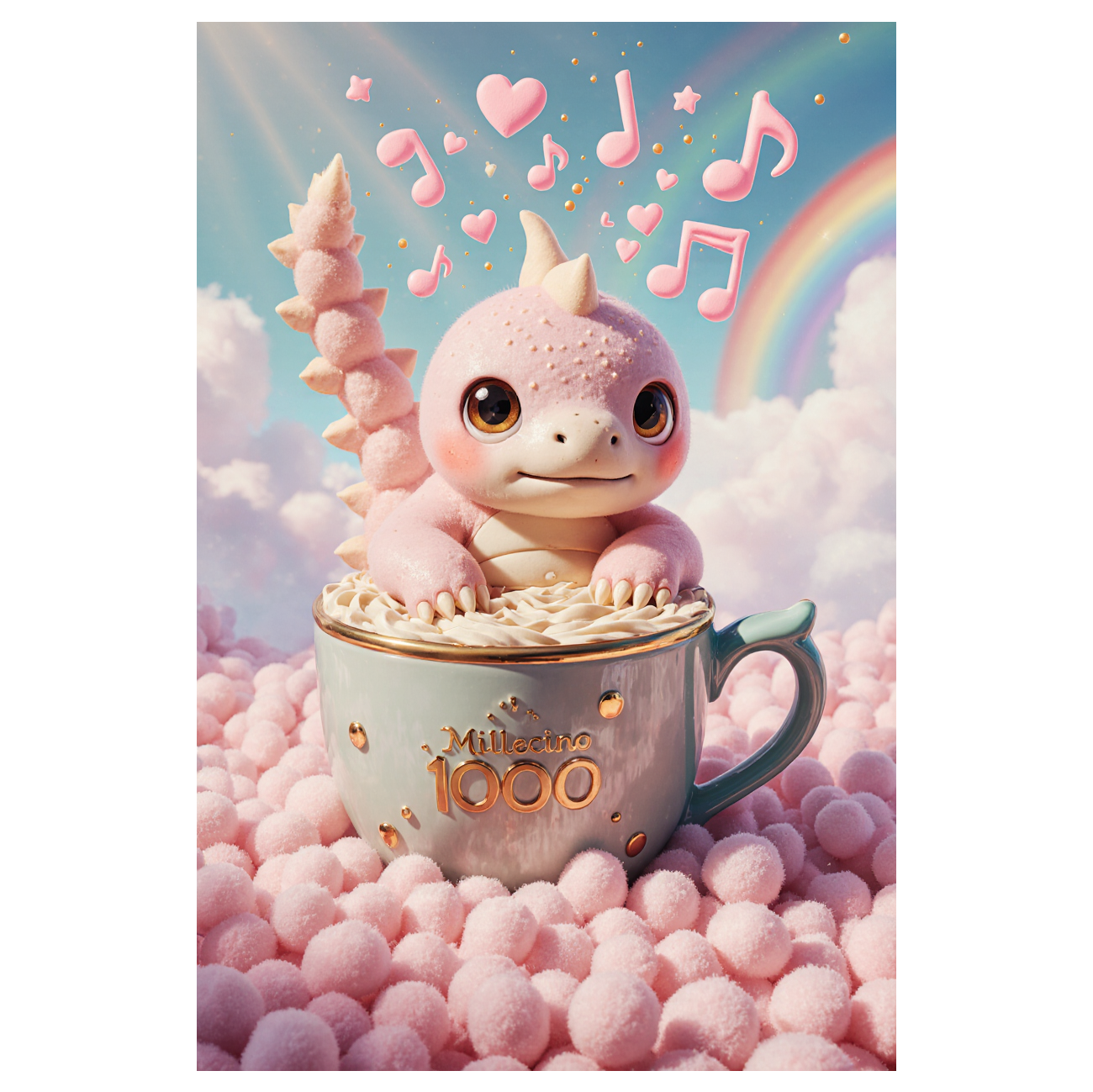 Bubblegum hyperpop with fake-Japanese vocaloid textures, airy pads, gummy bass, toy pianos, pastel ambient trap layers, and soft glitch FX, Tempo’s playfully sluggish; dreamy, childlike high-pitched vocals use pitch-shifted artifacts, whimsical synths, bubbly FX, steam and marshmallow pops, plus invented “chii!”, “puun~”, “twippi!”, and “flooffa!” ad-libs