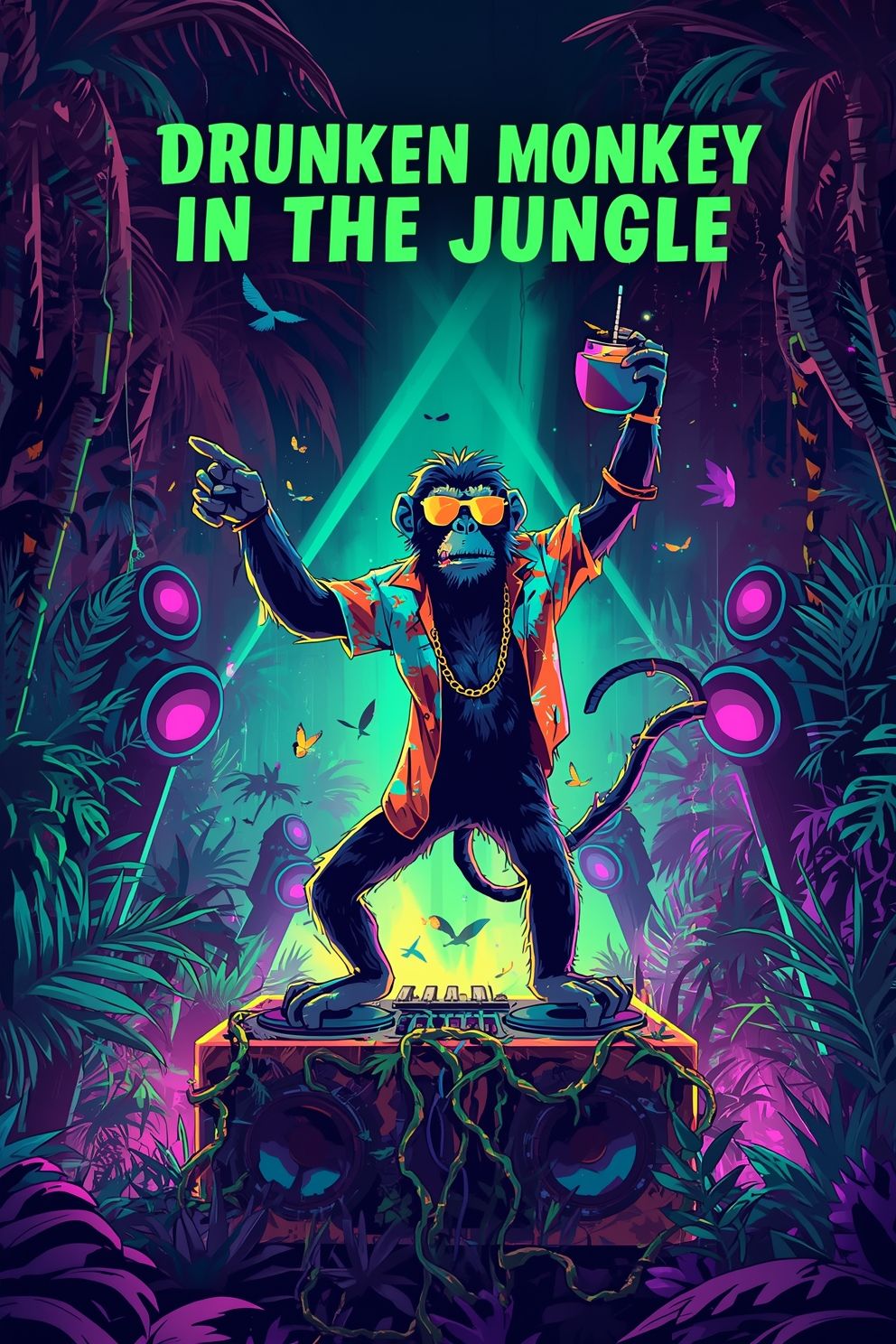 distorted 808s, trap hats and pounding four-on-the-floor drops, big-room arrangement aimed at crowd jump moments and chant-along sections, bottle clinks), gang vocals on hooks, punchy festival edm-rap-pop banger with hyper-bright synth leads, rap, happy, edm, jungle, playful fx (monkey calls, pop, crazy fun tempo shifts