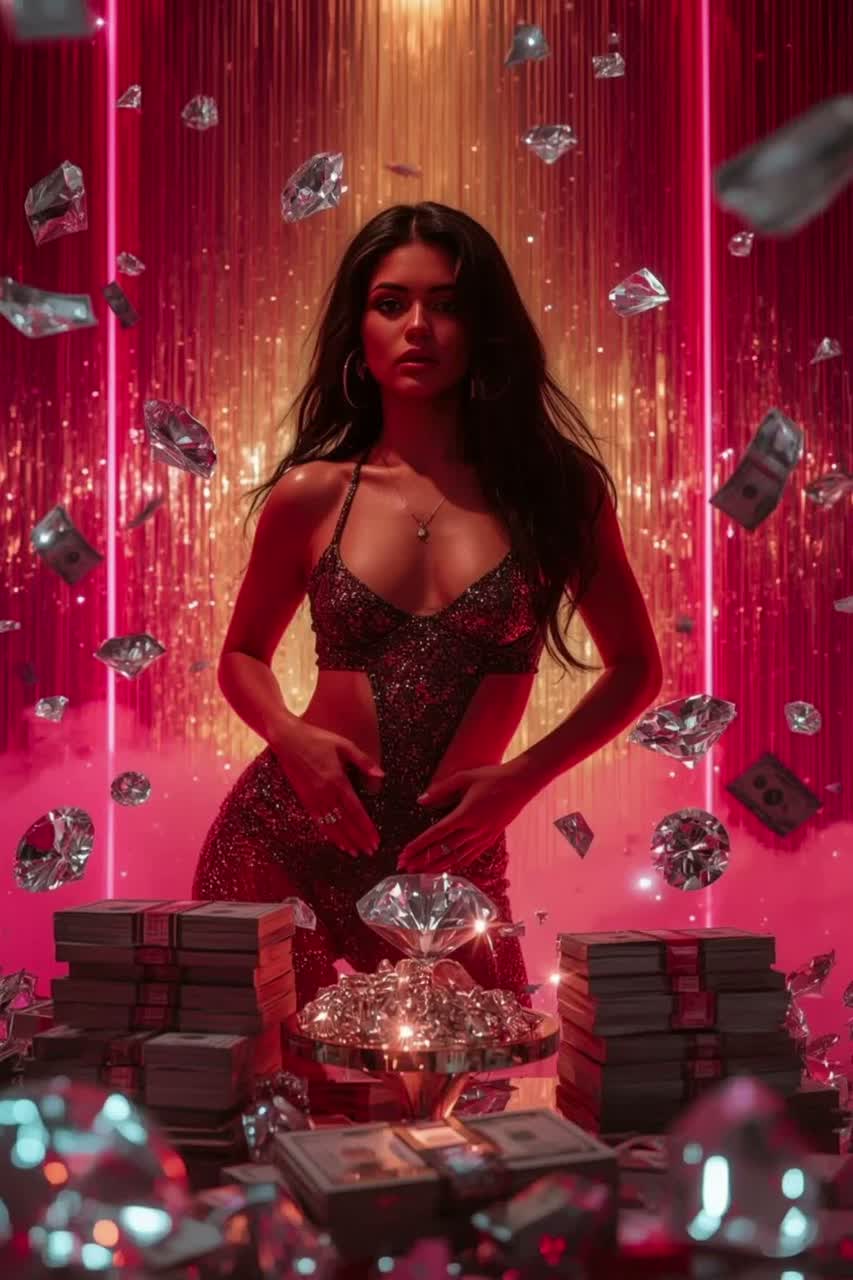 A high-energy club anthem with heavy punchy kicks, deep 808 bass, shiny modern synths, EDM risers and drops, and trap-influenced rap cadence in the verses, Female vocal delivers confident, rich bitch, boss attitude lyrics, Catchy, chantable hook for the chorus, Luxurious, dominant, bad bitch energy throughout, Structure: