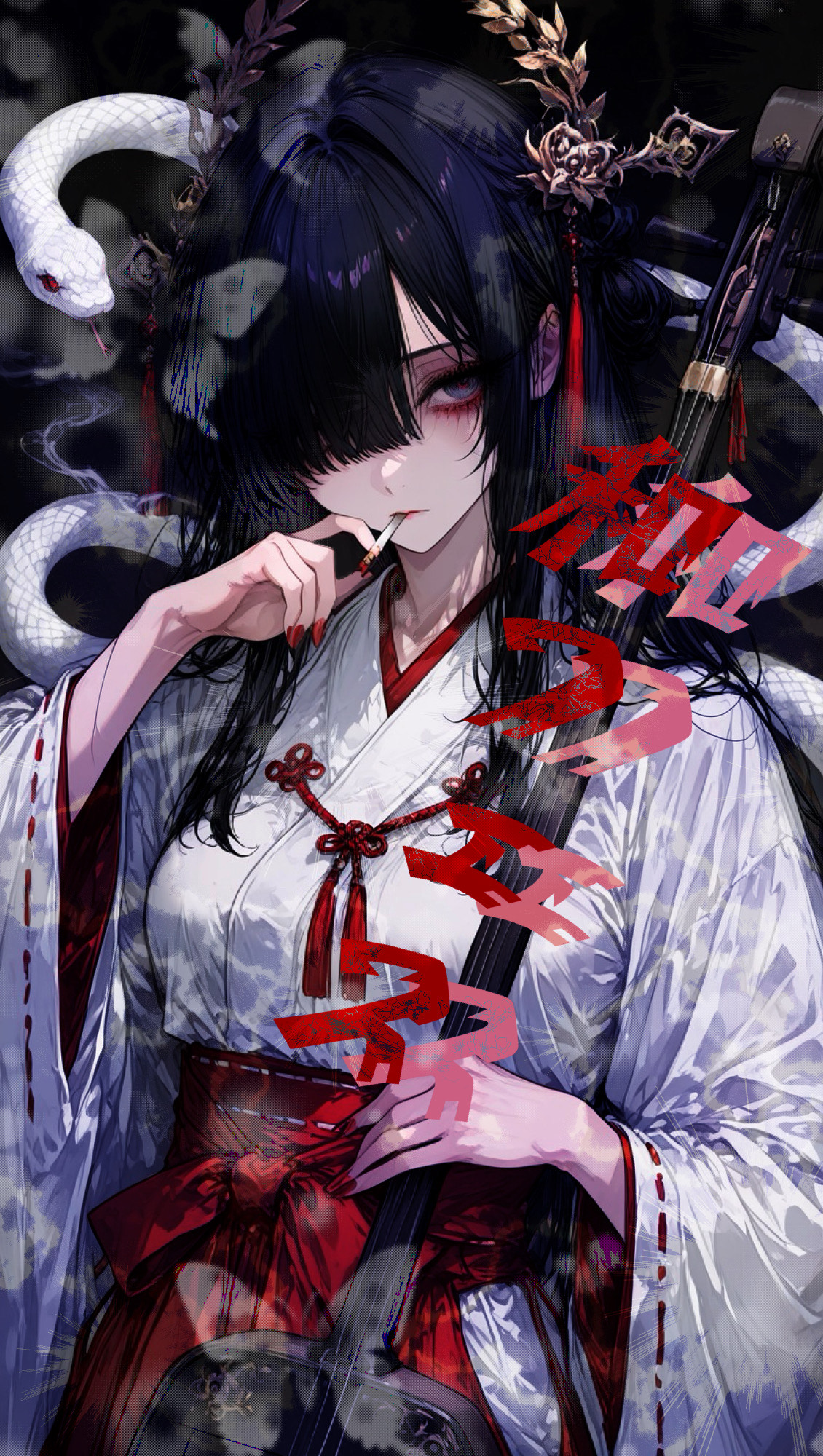 Japanese traditional× Gothiccore×Dark EDM, Electric shamisen riff, bamboo flute, taiko drive, koto Ambient, biwa, Japanese Synthesizer, aggressive Girl Alto Vocal