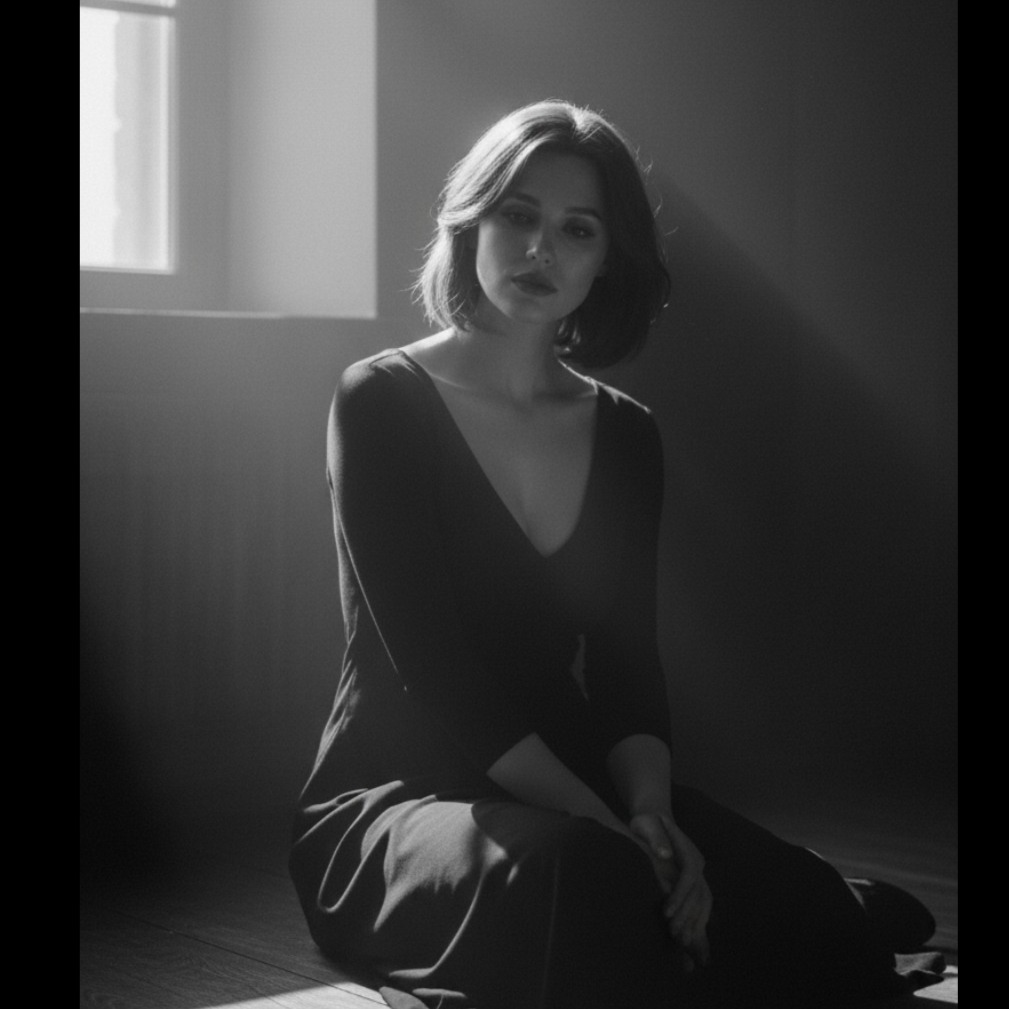 Dream Pop / Ambient Pop with Dark Pop undertones, 75 BPM, a slow drift, Instruments: Deep warm bass, ethereal synth pads, atmospheric clean guitar arpeggios, Subtle piano accents color transitions, Minimal slow‑motion beat enters smoothly in choruses—soft kick, brushed snare, never intrusive, Cello or string swells add melted depth in final sections, Vocals: Female—extremely low contralto, dark, husky, intimate, Deep chest voice, no head voice, no brightness, Words float like breath in cold air, Dynamics: Sparse intro (bass, pads, guitar), Verse floats, Beat enters gently for chorus, Bridge strips back to near‑ambient—pads drift, vocals sparse, Final chorus gentle but intensified, then fades into mist, Avoid: Bright vocals, high notes, soprano, loud drums, fast tempo