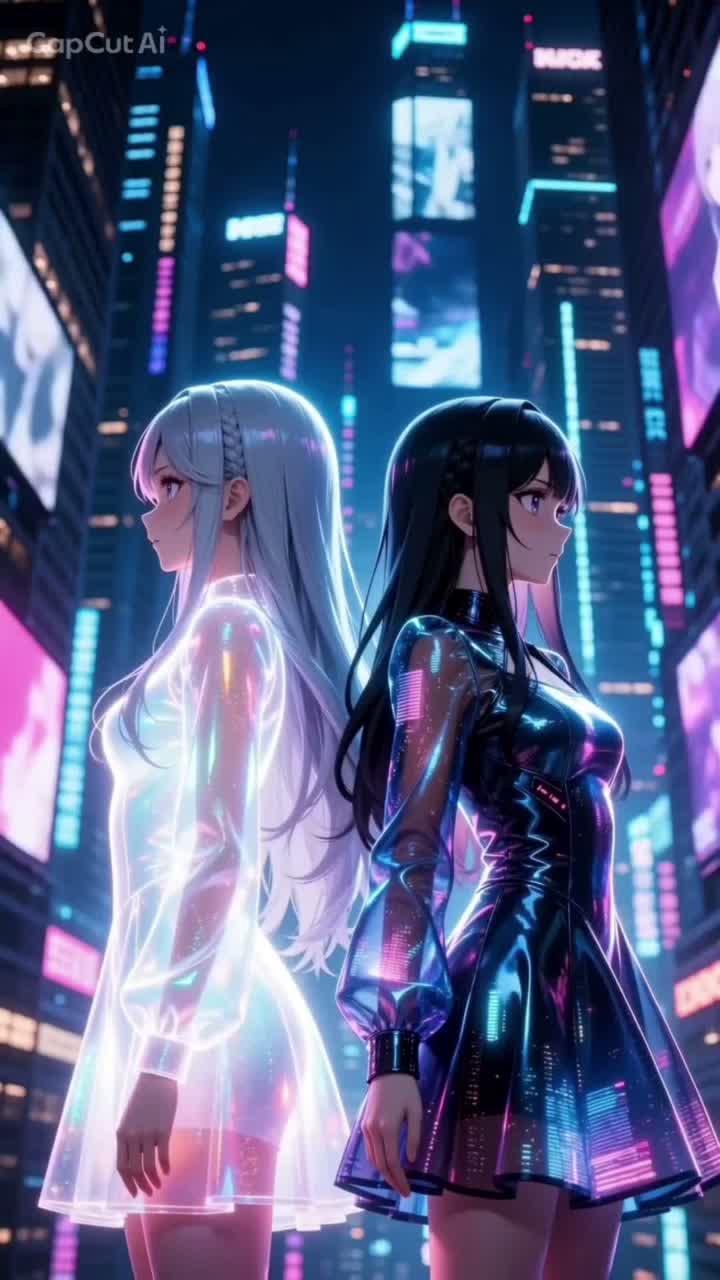 Hyperpop Electro Rap, 170 BPM, F minor, High-energy female twin vocals (two distinct voices), One voice delivers rapid-fire aggressive rap with sharp consonants, slightly panned left, The other voice is airy, emotional, melodic, slightly panned right, Futuristic, glitchy, lightspeed atmosphere, Sound design: heavy sidechained kick, glitch synths, laser FX, vocal chops, stereo delay throws, Structure: