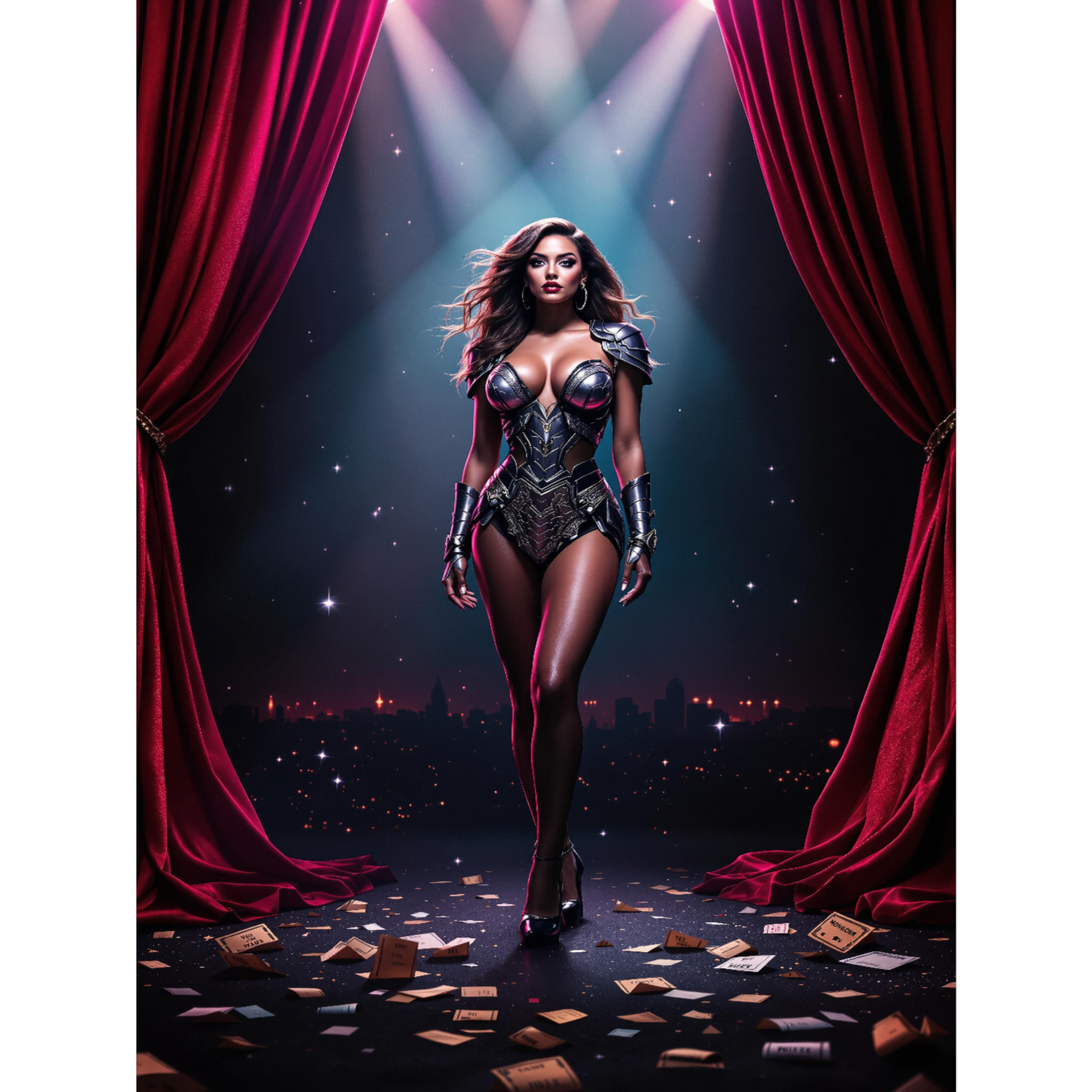 dramatic electro-pop anthem with club-ready production and theatrical flair, Inspired by late-2000s maximalist pop, it should feature punchy synth bass, gated claps, supersaw leads, cinematic strings, and triumphant brass, Vocals should be bold, rhythmic, and heavily produced with chopped FX and gang shouts, High-gloss, high-drama energy for a mainstage performance