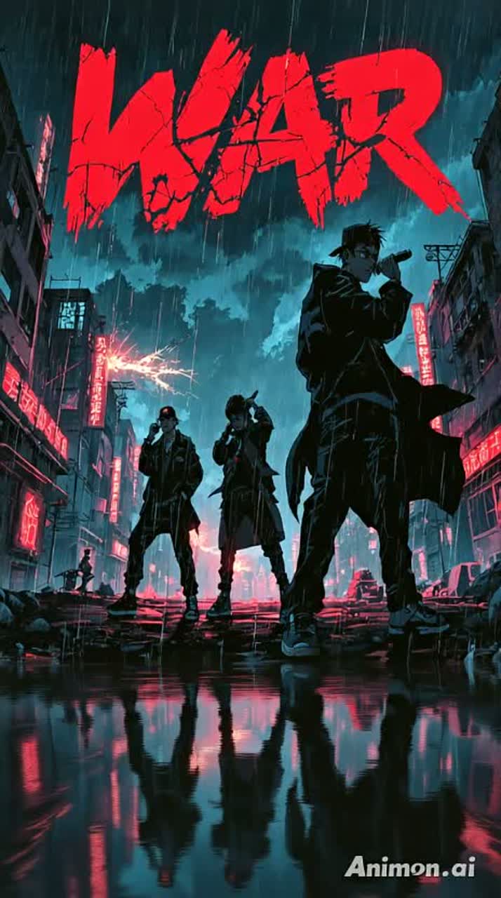 Rapper 1: deep tone, calm storytelling, Rapper 2: low, wise and powerful tone, like a mentor or philosopher, Rapper 3: rough tone, emotional intensity, Chorus performed as a loud chant shouting “WAR!” — layered with crowd-style vocals and DJ scratches, Outro : scratch the vocal line: ‘This war-like era—world we live in!’ with chopped, stuttered phrasing: ‘Thi—Thi—This war— / world we— world we live in—in!’ Make it raw, gritty, and 90s battle DJ style, ”