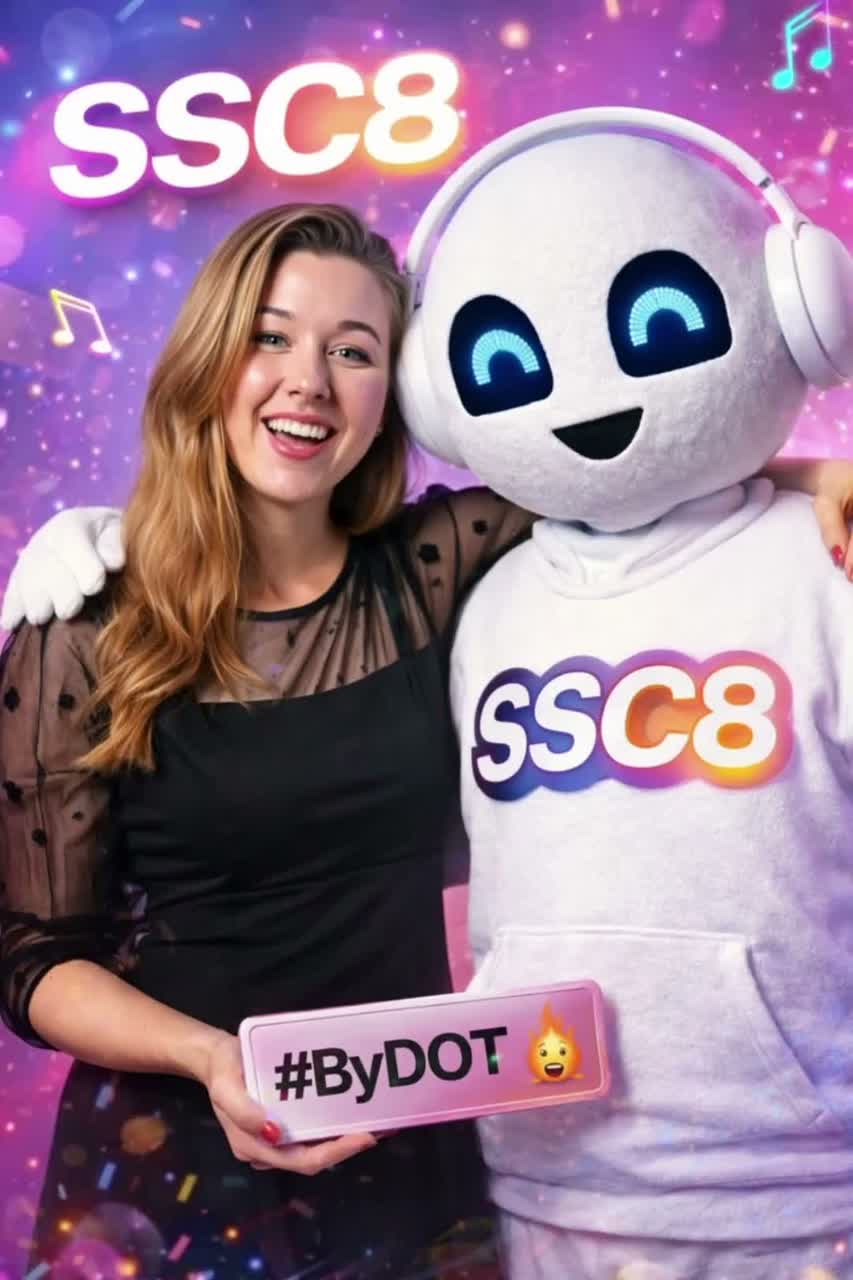 Liquid drum and bass foundation at 174 BPM in F minor, jungle breaks and big beat impact, euphoric acid house energy with squelchy 303 lines, driving hard snare and energetic hand claps, crisp modern mix with gritty texture layers and glitch stutters, French touch-style sidechained disco-filter synth stabs supporting a sharp catchy bass hook, rebellious raw lead vocal with confident attitude (female or androgynous), minimal but addictive chant hook built around “SSC8” and “ByDOT”, abrupt drops, layered textures, short call-and-response crowd chants, girl-group style harmony stacks only in the final chorus, keep the beat running during the bridge, anthem structure Intro–Verse–Pre–Chorus–Chorus–Verse–Pre–Chorus–Chorus–Bridge (beat continues)–Final Chorus–Outro, no cheesy clichés, make it sound like a real community kickoff single