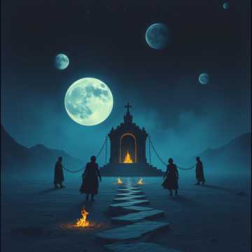 POLYPHONIC, Symphonic Opera Rock, Doo-woop, Shamanic, Ethereal, Electronic, Choral, layer building, Epic Rock, Cosmic Horror Show, Grandiose Finale, electronic bassline, dark synthwave, Powerful Voices