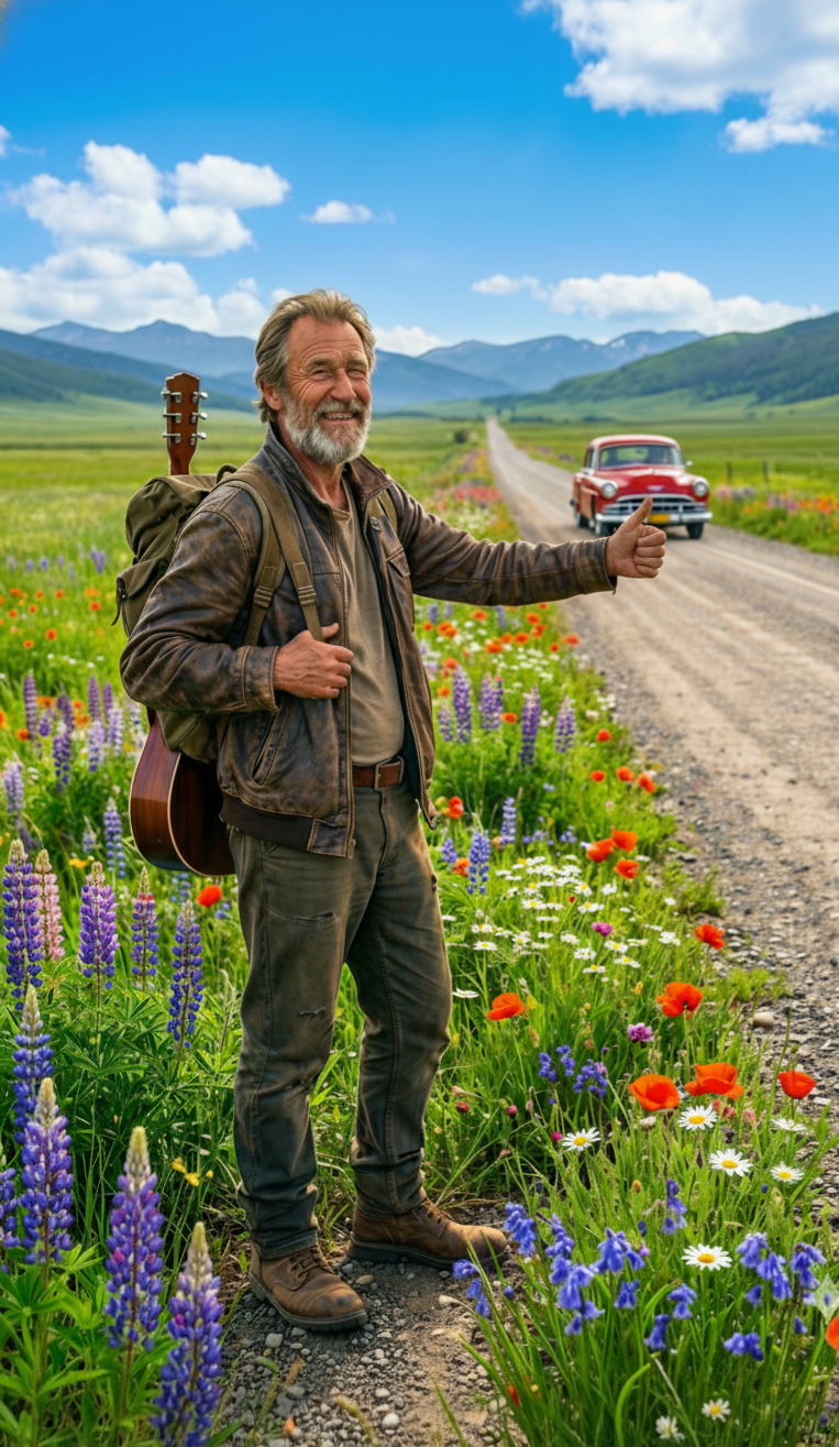 Russian Chanson, Road Ballad, soulful, melancholic, atmospheric, slow tempo, around 85 BPM, [Instrumentation: acoustic guitar (nylon strings), accordion, simple drum kit, oboe]