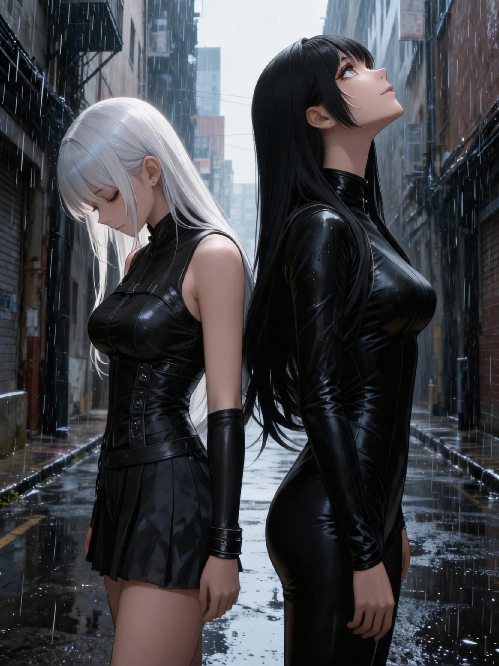 Female twin vocal metal rock inspired by mid-era X Japan, One female vocal is highly emotional and dramatic, shifting from melodic singing to powerful screams, The other female vocal is emotionless, calm, and detached, almost like a narrator or observer, Dark, tragic, and beautiful atmosphere with themes of ruin, ecstasy, and collapse, Fast and aggressive sections with heavy distorted guitars and double kick drums, contrasted by slow, piano-driven and gothic passages, Dramatic dynamics, sharp contrasts between silence and explosion, Gothic, melancholic, destructive yet elegant, Japanese lyrics mixed with English refrains, Mood: tragic, decadent, violent beauty, existential despair