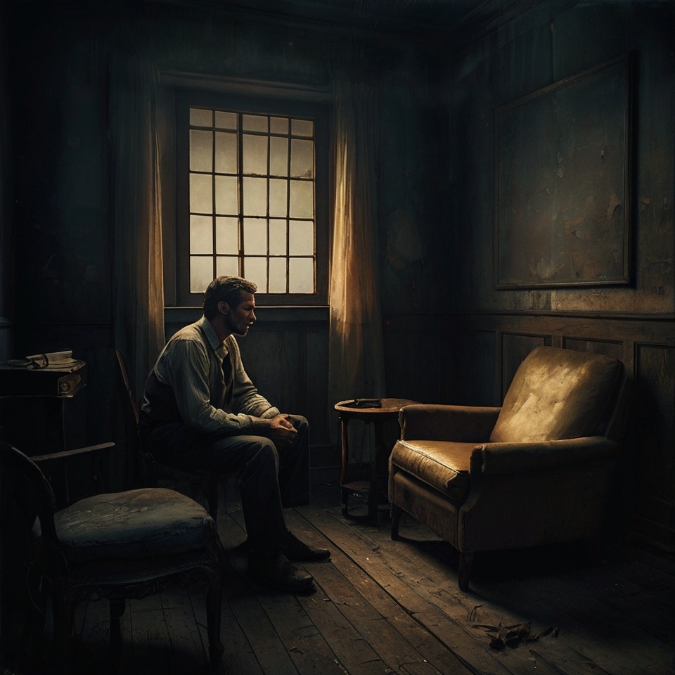 A moody, introspective soundscape blending minimalist piano, ambient synths, and sparse percussion, The instrumentation evolves subtly, starting soft and atmospheric, then deepening with gentle bass, ambient guitar textures, and intimate background harmonies, The pacing is meditative, leaving space for breath and emotion, Each section builds with restraint, allowing storytelling and emotional weight to take center stage, Ideal for a reflective, spoken-word-inspired vocal delivery