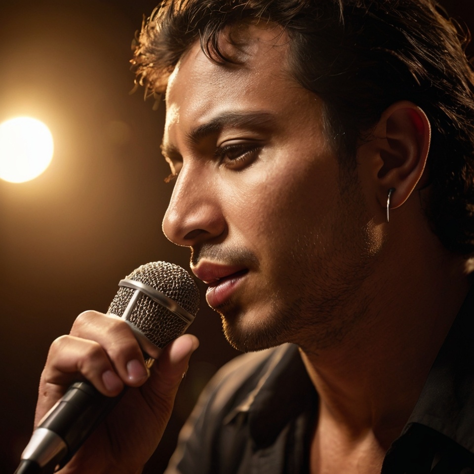 This song blends Latin pop and ballad elements with a slow, emotive build that culminates in a powerful, heartfelt climax, The arrangement features warm nylon guitars, subtle percussive textures like cajón and congas, and lush orchestral strings that create a cinematic depth, The vocal delivery is passionate and intimate, showcasing dynamic phrasing, expressive vibrato, and tasteful ornamentation such as slides and trills, embodying a rich Latin tenor style, The rhythm balances traditional Latin grooves with modern pop sensibilities, maintaining an engaging yet smooth flow, Production is polished but organic, using minimal effects like light plate reverb and natural delay to preserve warmth and closeness, The track invites listeners on a universal journey of hope emerging from darkness, capturing raw emotion and vivid storytelling through rich harmonic layers and intricate melodic motifs