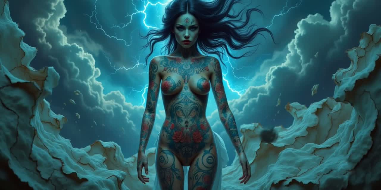 Opens with a mystical Gregorian male choir, cello, and steel guitar against swirling, stormy psy ambient and thunder FX, Suddenly, hard minimal techno pulses with 4/4 acid trance beats, deep double kicks, and stacked percussion, Brass band fanfares and syncopated licks cut through lush synth pads and church organ, NASA samples shift spatially via Atmos, while energetic brass stabs, acid trance breaks, and detailed atmospheric sweeps propel dramatic drops and vividly layered, immersive breakdowns merging mysticism with club intensity