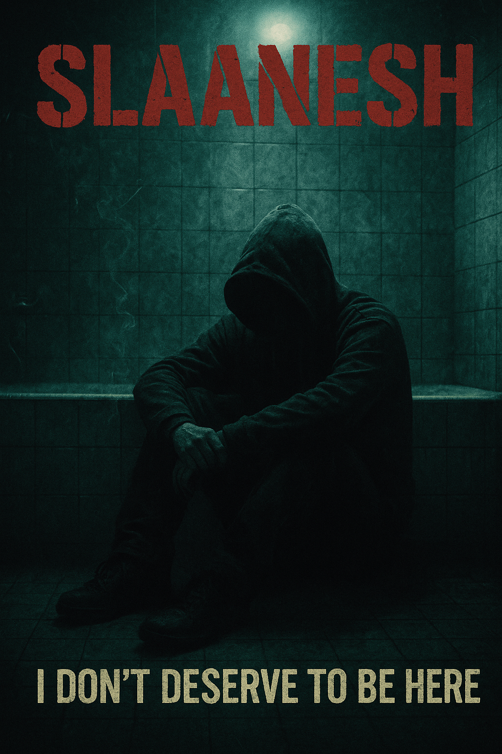 Early 2000s nu-metal dark alt-metal depressive tone, Downtuned 7-string guitars, grinding low riffs, dissonant bends, Tight punchy drums, half-time drops, tribal toms, moody bass, Whispered shaky verses, close-mic breath, voice cracking; explosive screamed choruses with raw emotional breaks and JD-style desperate squeals, Spoken-sung hybrid lines, muttered phrases, Industrial ambience: metallic echoes, soft mechanical buzz, flickering light vibe, Mood: hopeless, suffocating, inward-spiraling, intimate, Slow build into a frantic final chorus, then abrupt silence for unresolved impact
