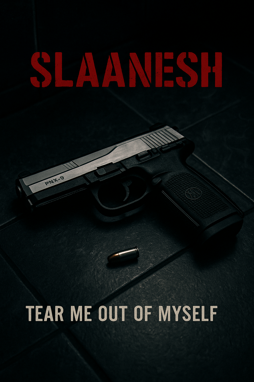 Early 2000s Nu-Metal and Dark Alternative Metal with a bruised emotional edge, Male vocals switching between whispered, shaky verses and full-throated, layered screams in the chorus, Delivery is broken, exhausted, trembling, with occasional desperate squeals and cracked yelps, Downtuned 7-string guitars, tight punchy drums, moody bass, slow industrial grind textures, and Middle-Eastern-tinged melodic lines woven into the background, Spoken/sung hybrid vocals with raw aggression and hopeless vulnerability, Heavy tribal drum accents, ambient tension, and grinding metallic undertones, Mood is dark, angry, vulnerable, internal, spiraling, Theme focuses on falling back into old addictions, losing control of yourself, self-sabotage, and emotional collapse, Tempo sits in a mid-to-heavy groove with thick, oppressive atmosphere