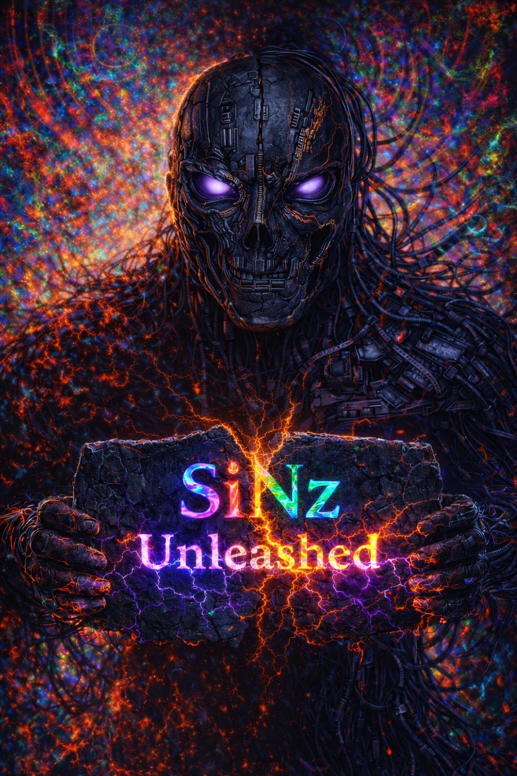 Aggressive neuro metal hybrid with extreme energy, chaotic movement, and a dark cinematic atmosphere in the SiNz aesthetic, Combine distorted low-tuned guitars with evolving neural synth behavior, using pitch bends, slides, and rhythmic modulation so the guitars feel alive and constantly shifting rather than static riffs, Incorporate fast call-and-response movement between left, right, and center elements to create a sense of overwhelming motion, Use extremely deep, clean, and powerful sub bass that feels physical and immersive, Drums should be tight, punchy, and explosive with rapid transitions and controlled chaos, Add glitch textures, distorted layers, and atmospheric tension to create a sense of intensity and unease, Male vocal is aggressive, low, and commanding with percussive delivery and controlled grit, avoiding traditional screaming in favor of a dark, powerful presence that feels almost inhuman, Arrangement should escalate with multiple evolving sections and intense drops, ea