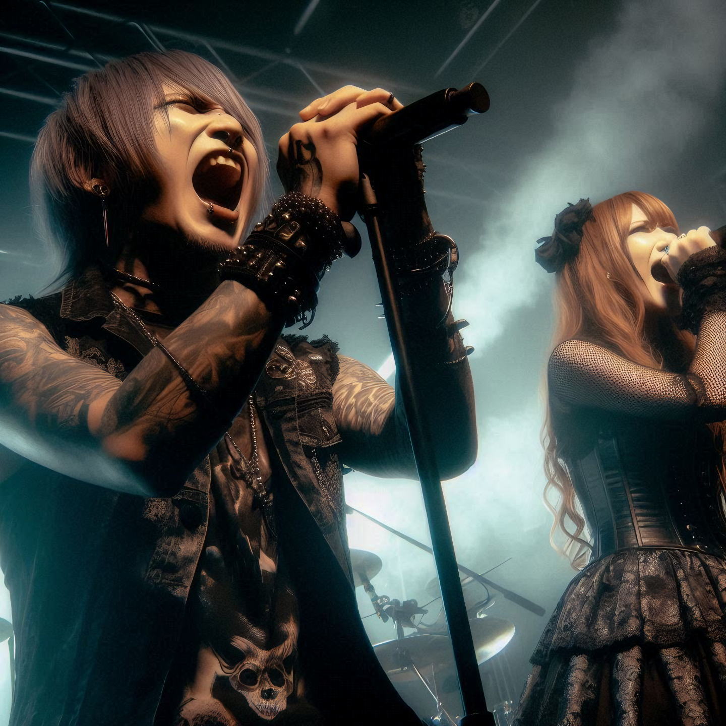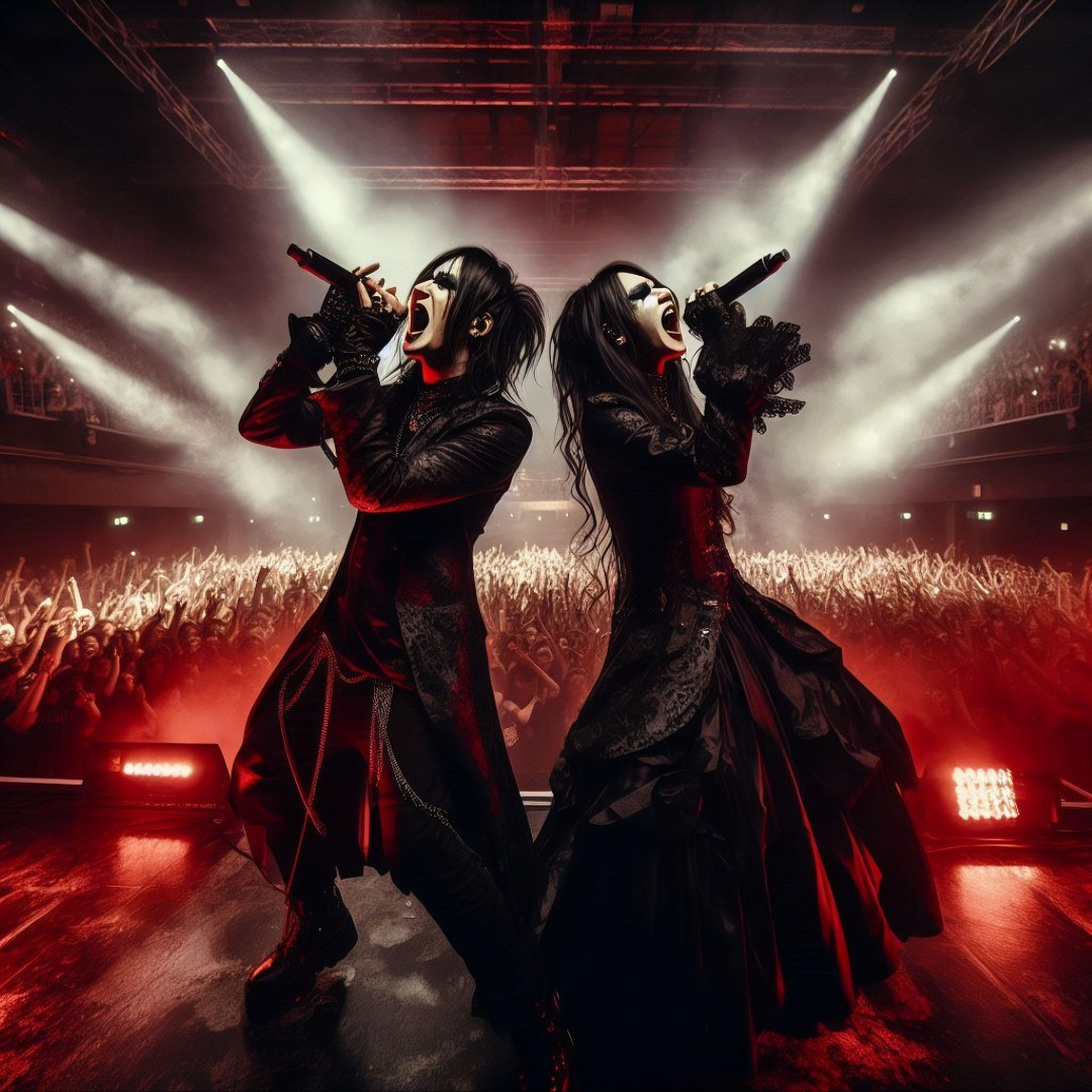 Performance: Explosive and captivating, fusing metal rage with visual-kei flamboyance and gothic elegance
