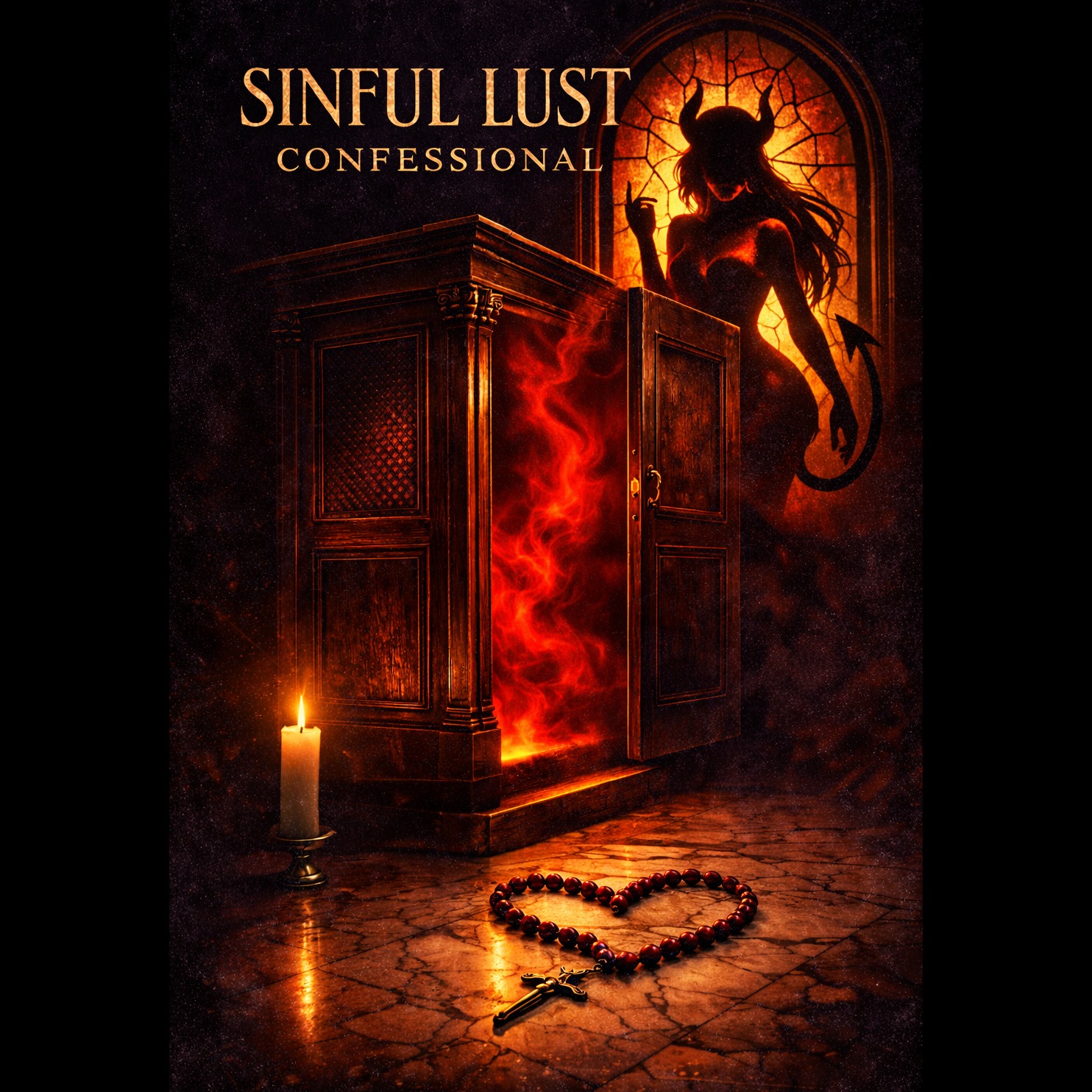 Electro Swing + Church Jazz; seductive female vocal, vintage brass section, walking upright bass, swing drums, electronic kick, vinyl crackle, pipe organ, church bells, gospel choir harmonies, finger snaps, dark cabaret atmosphere, playful but sinful tone