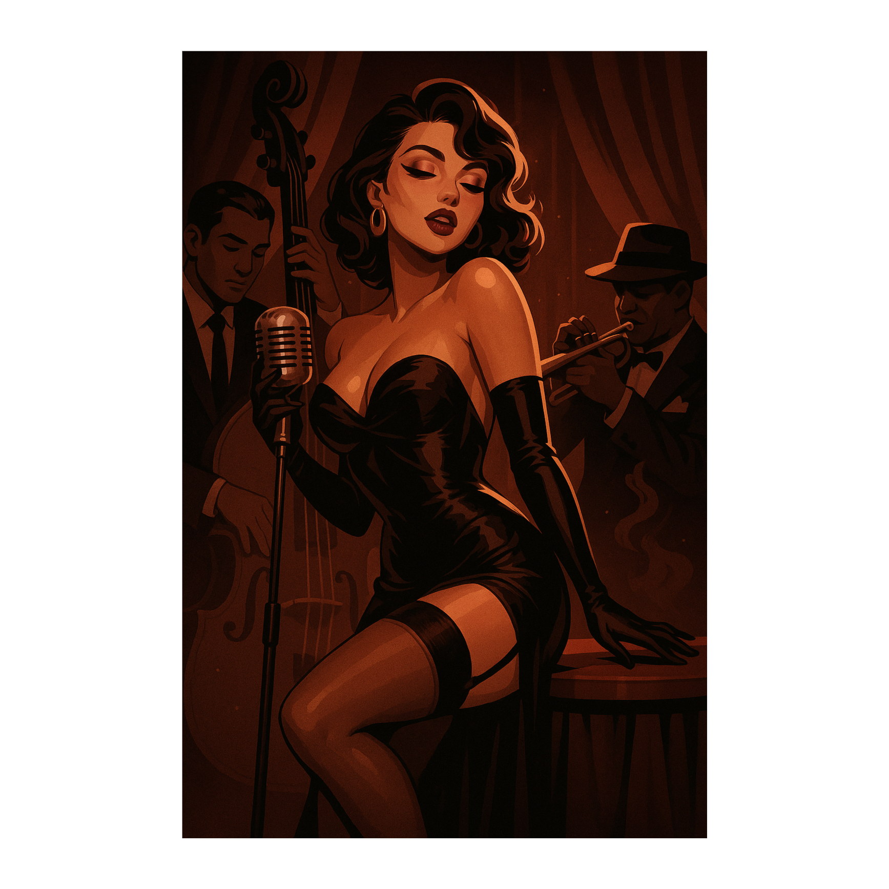 A fusion of Acid Jazz, Electro Swing, Classic Jazz, and Blues, Energetic brass stabs, upright bass grooves, brushed drums, and smoky lounge piano support a sultry female vocal, The mood swings between vibrant club ambiance and deep emotional undertones — like dancing through heartbreak in a dress stitched with regrets
