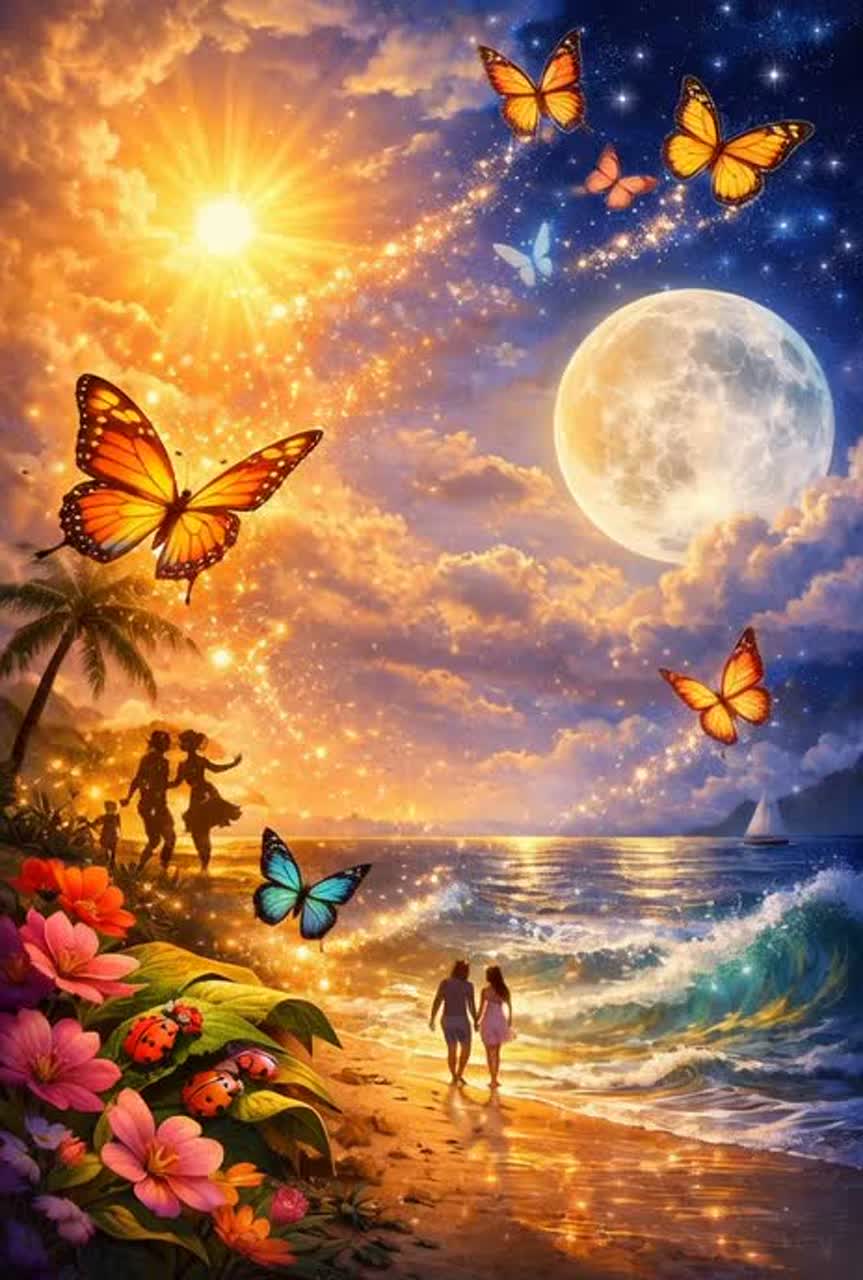 This Tropical House meets Melodic Trance track opens with lush, warm synth pads and melodic leads, Auto-tuned, echoing throughout, Playful tropical percussion and smooth synth bass drive the groove, with airy builds leading into vibrant, multi-layered choruses saturated with dreamy background vocals and glistening effects, ‑Klavier, ‑Piano, ‑E-Piano