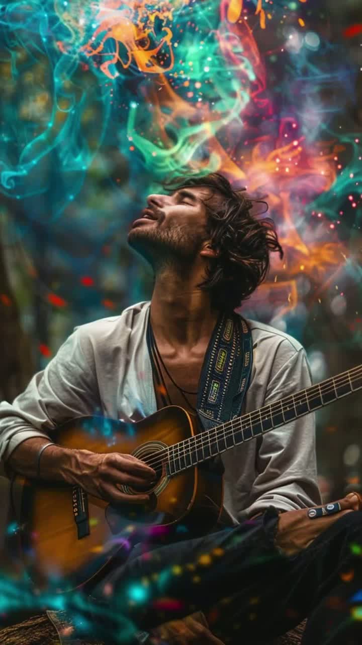 The acoustic instrumental opens with alternating bass, gentle hammer-ons, and pull-offs, setting a cool jazz-meets-chill trance vibe in open D tuning at 100 BPM, Bright, raw guitar tone fills the stereo field, The midsection escalates to rapid percussive slaps and thumb hits on low D, layering polyphonic rhythms, Slides, harmonics, and tapped intricacies, including rapid 32nd note runs near the high D, add flair, Dynamic phrasing swells from soft to strong, using rubato and subtle accelerando to heighten emotion and rhythmic tension