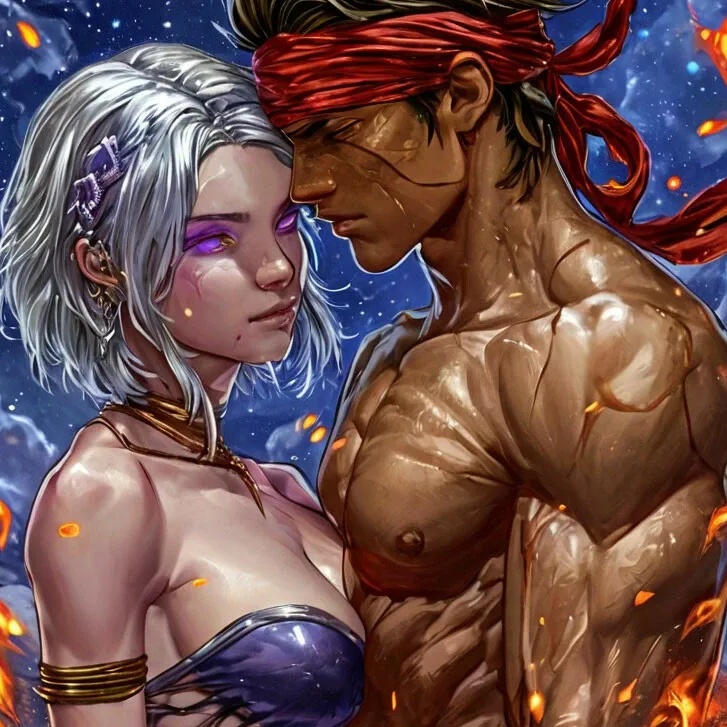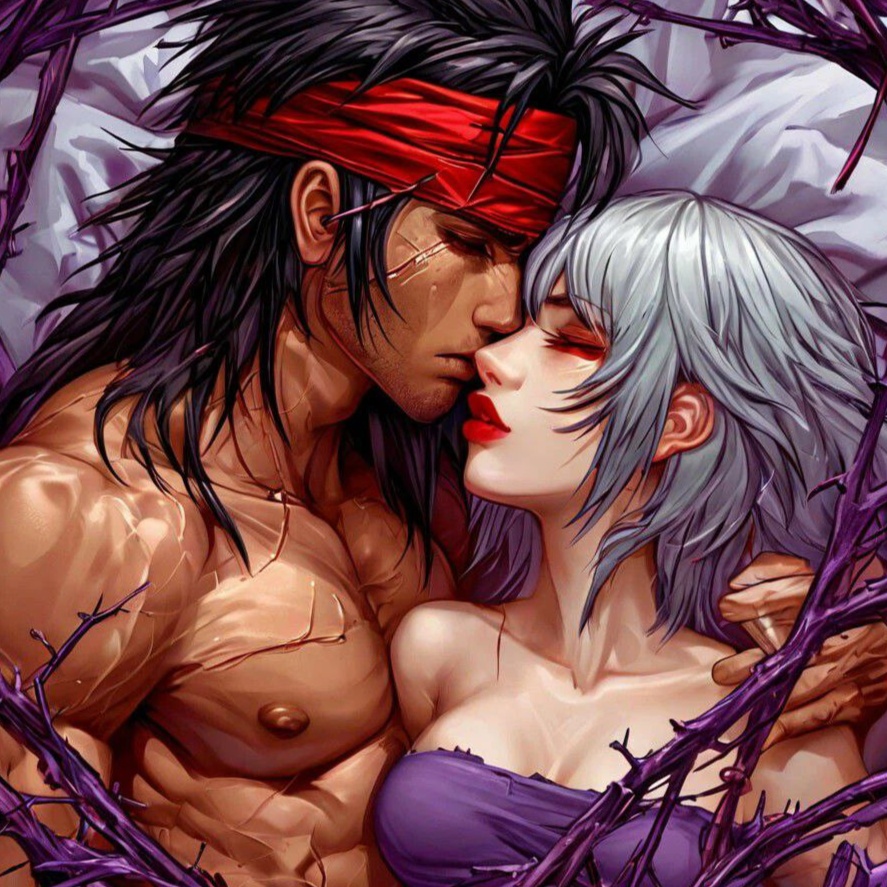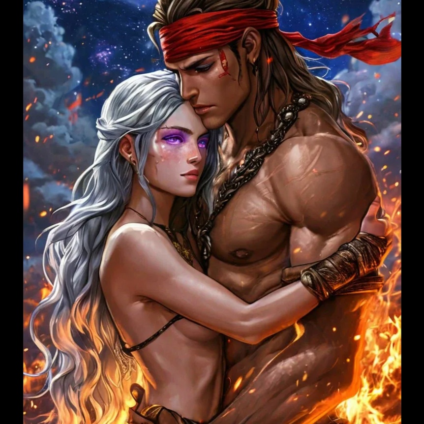 hard rock/heavy metal Heavy guitar riff, dark, darkness, dramatic tense atmosphere, melancholic, strong male vocal romantic, sincere, a duet