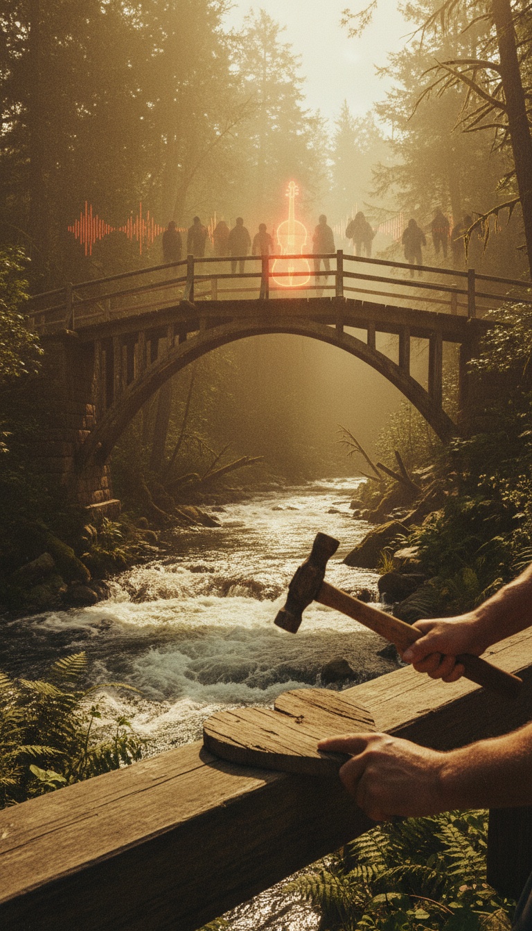 Start with open-tuned acoustic guitar, delicate and close-mic’d, enriched by soft field recordings and creaking wood for an organic base, Emotive male falsetto glides through auto-tune, layered in lush harmonies, Muted French horn and cello harmonics add warmth and intrigue across a wide, analog-mixed stereo field, A restrained but melodic hook emerges among textures, all captured in 192khz detail for immersive ambient indie folk clarity