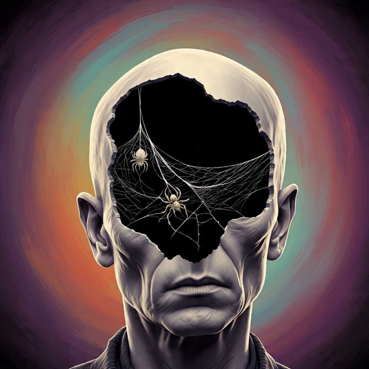 Dark, psychedelic rock track in a late-1960s style, The music should be slow, brooding, hypnotic and build, with a droning minor key progression and long, echoing organ chords, Include a sparse but reverb-heavy electric guitar with clean, eerie tones and occasional haunting, blues-influenced fills, Drums should be minimal and tribal, using toms and cymbals more than snare, with a loose, atmospheric feel, Bass should be deep, steady, and slightly repetitive, creating a trance-like foundation, eerie organ, Dramatic baritone male vocals should alternate between half-sung, half-spoken delivery and dramatic, surreal singing, The singer’s tone should be low, smoky, and theatrical, with a slightly unhinged intensity that grows as the song progresses, Spoken passages should feel poetic, mysterious, and improvisational, while the sung sections rise in intensity with a haunting, echo-laden reverb, The overall mood should feel like a psychedelic séance inside a haunted mind: eerie, poetic
