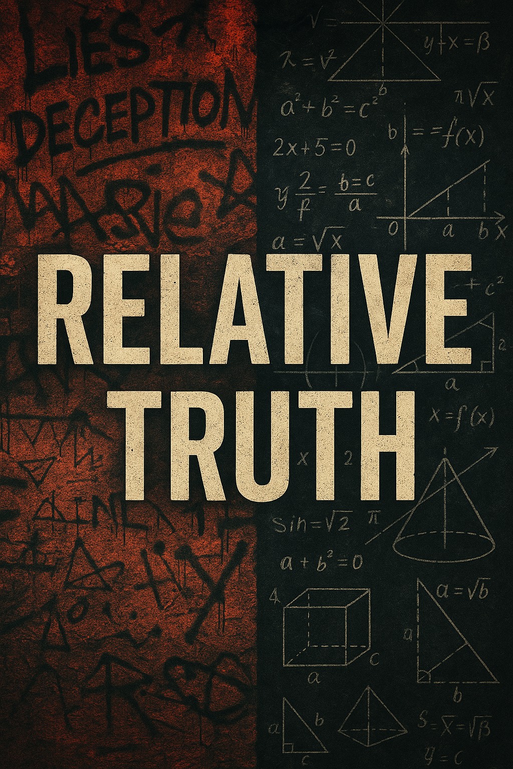 A dark, cinematic rap-metal anthem that crushes the illusion of relativism, Aggressive male lead delivers measured, deliberate rap verses with heavy emphasis, slower tempo, and sharp diction so each bar lands with weight and conviction, Explosive trap-metal choruses with chant-like gang vocals, glitchy growls, and distorted layering, stadium-ready and unforgettable, Distorted bass, pounding 808s, electric guitar stabs, and cinematic drums drive the track with gritty intensity, Intro spoken and cinematic, building tension, Verses are slower rap-metal flow — clear, heavy, and undeniable, Pre-chorus builds with chant rhythm and tension, Chorus explodes with massive, glitchy anthem energy, full of chanting and distortion, Bridge breaks down to heartbeat bass with intimate spoken conviction, then roars back with stacked layered vocals in the final chorus