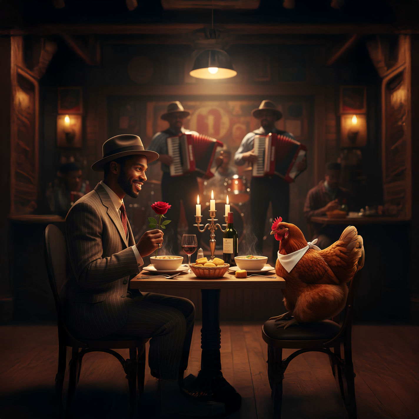 Zydeco groove with Creole soul, Upbeat Louisiana Cajun Zydeco featuring virtuoso button accordion, vest-style frottoir (washboard), swinging Telecaster guitar, warm bass, and second-line style drums with snare shuffle, Energetic, danceable, and rootsy with a touch of 1950s swamp blues flavor, Male Black Creole vocalist with a rich, soulful tone, singing in English with a light Louisiana Creole accent, Natural phrasing, playful delivery, and a warm call-and-response energy, Vintage analog mix, lively and authentic South Louisiana dance-hall sound, Melodic, catchy, memorable