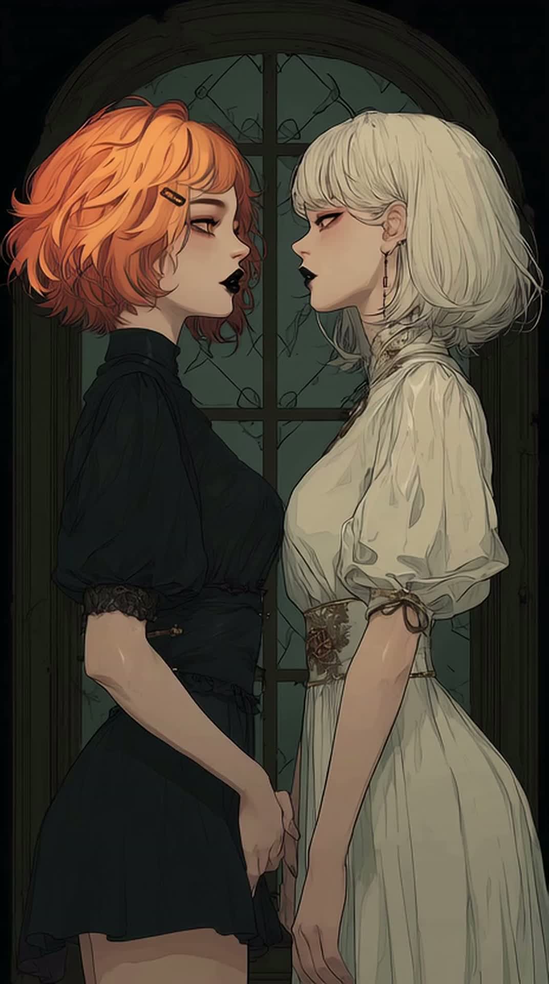 Slow dark two-part female harmony to blend the vocals seamlessly, duet, dark folk, dark acoustic rock, arpeggiated guitar, piano shimmer, cello, dark alternative, atmospheric, mysterious, melodic, catchy, storytelling, memorable